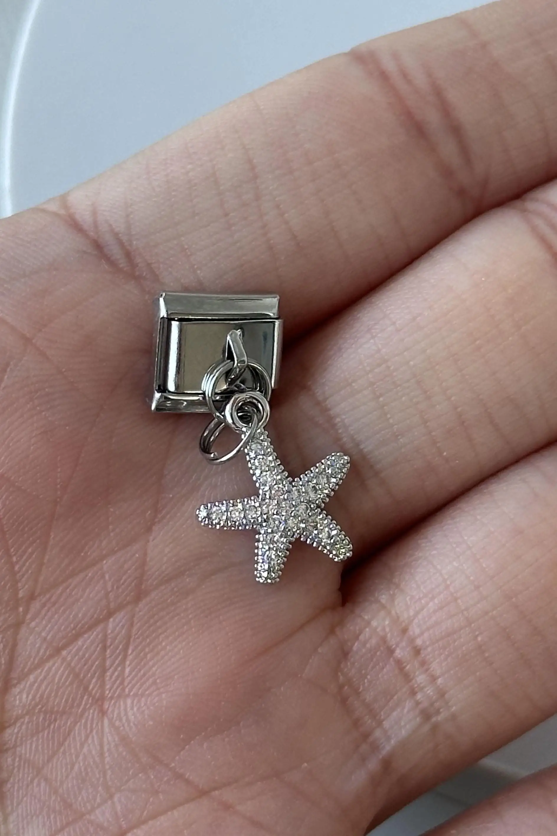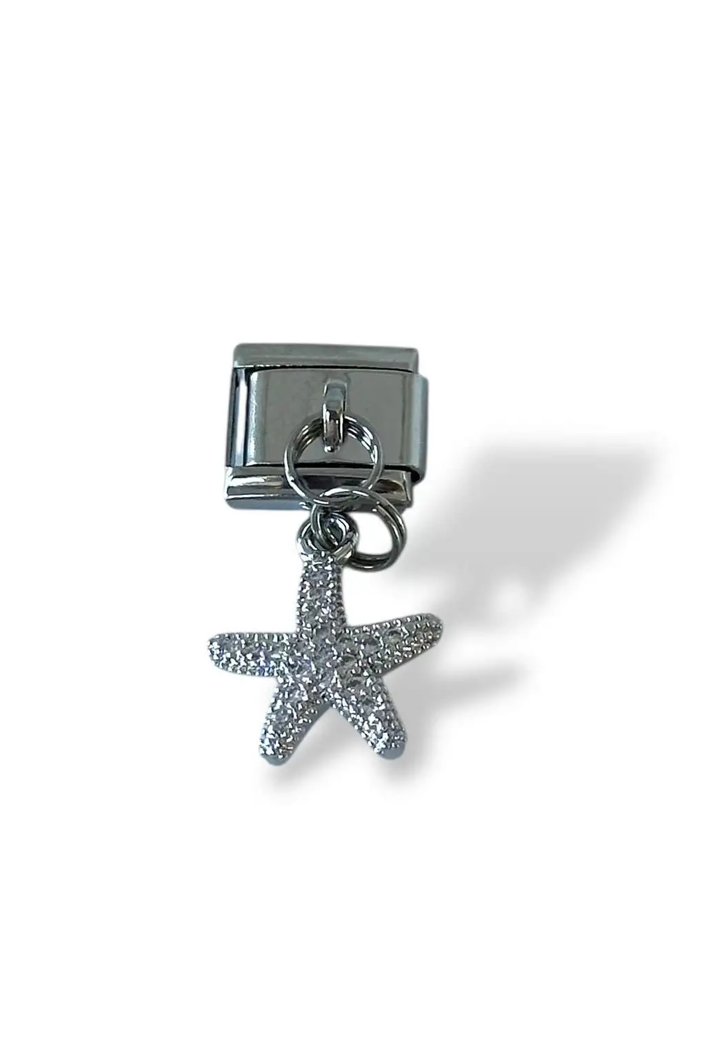 Gümüş Renk Yıldız Figürlü Taş Detaylı Çelik Nomination Charm (Tek)