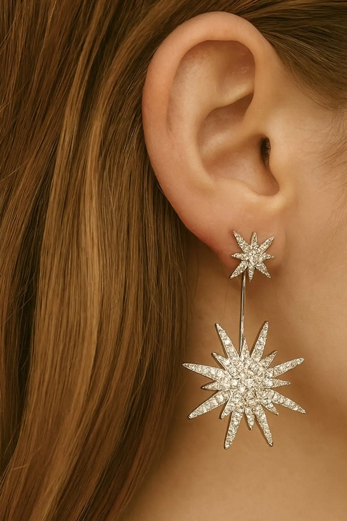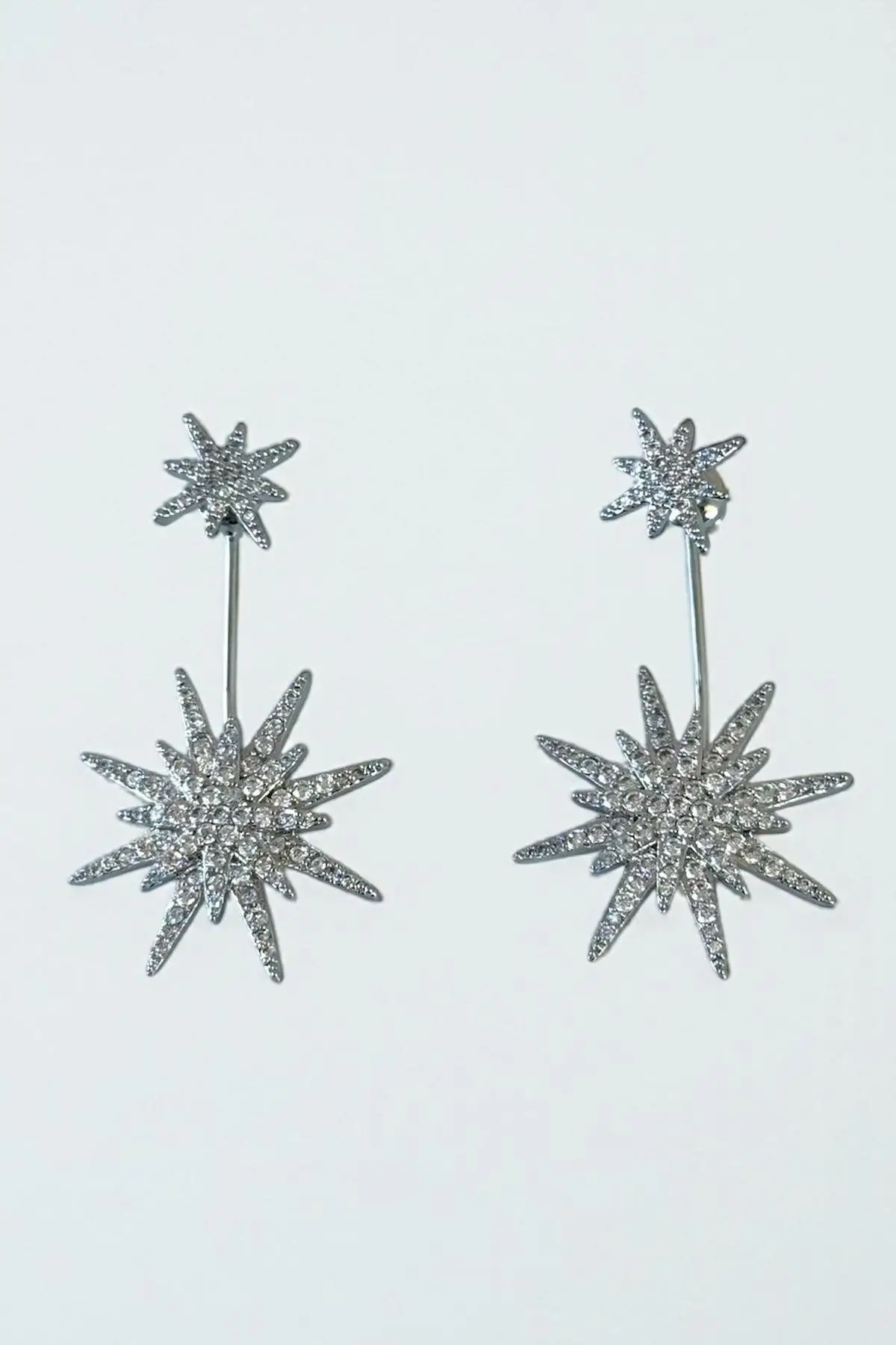 Gümüş Renk Yıldız Figürlü Taş Detaylı Küpe (Çift)