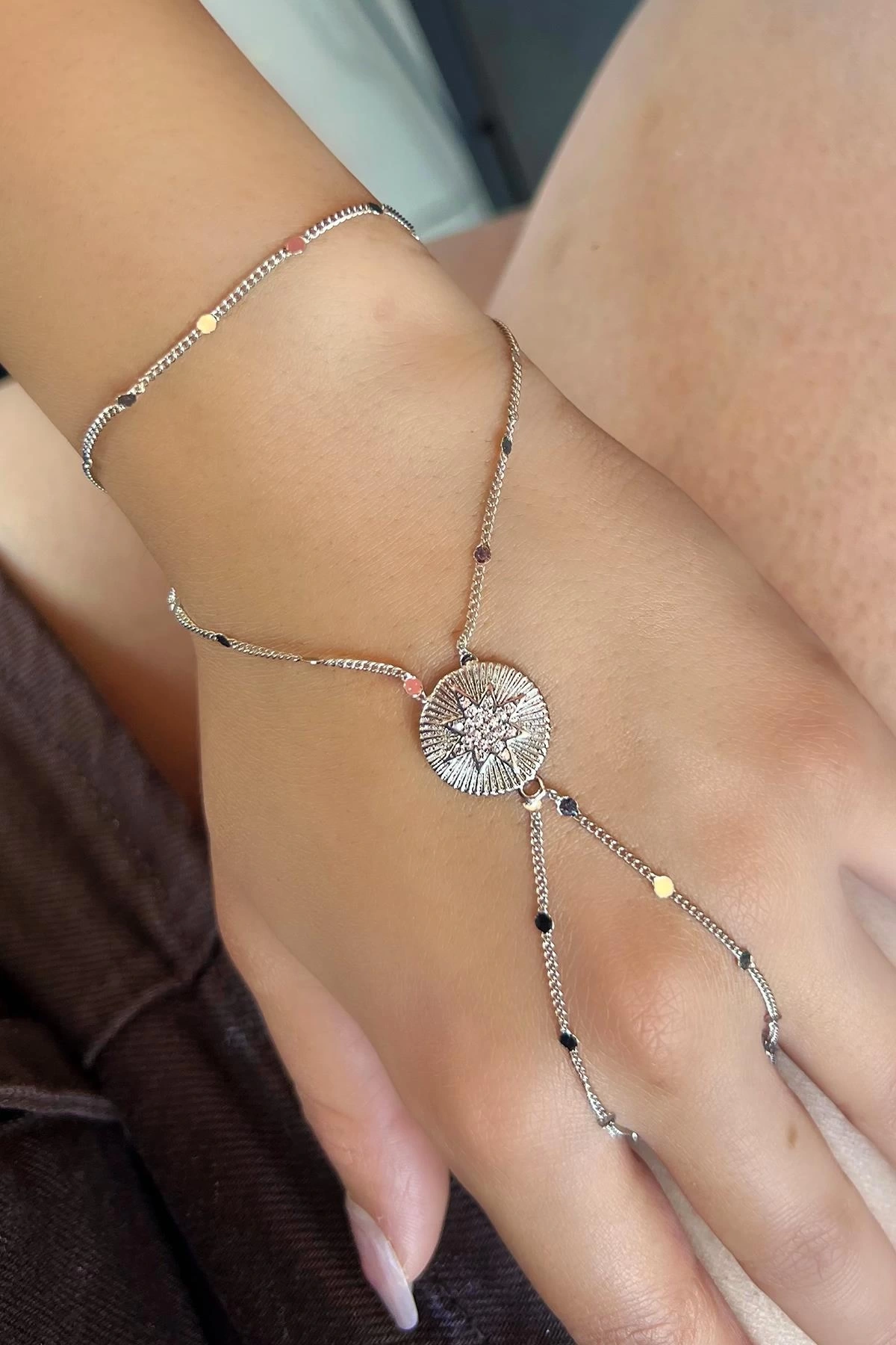 Gümüş Renk Yıldız Figürlü Taş Detaylı Şahmeran