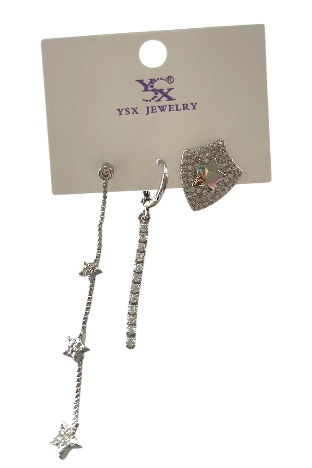 Gümüş Renk Yıldız Figürlü Taş Detaylı VİP 3'lü YSX Küpe Set