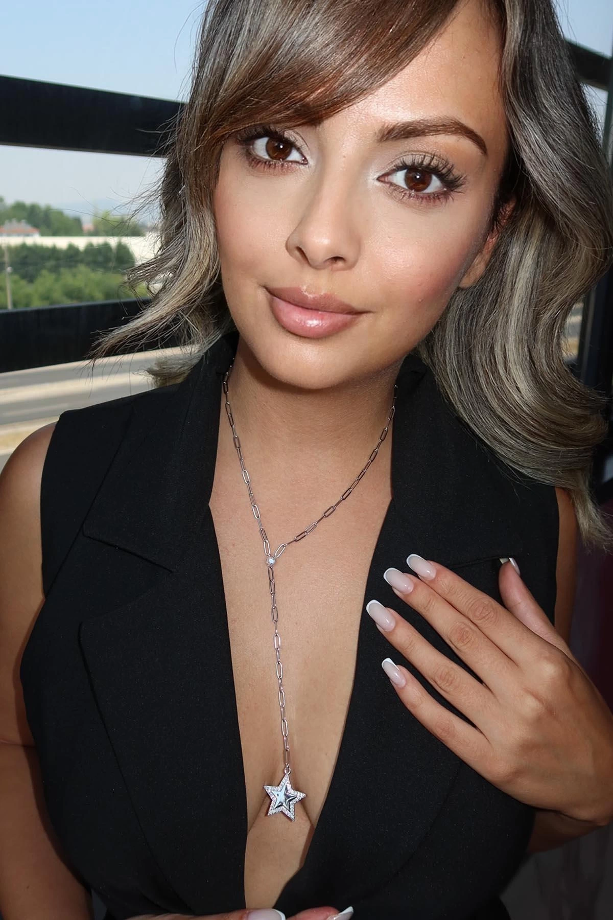 Gümüş Renk Yıldız Figürlü Taş Detaylı Y Kolye