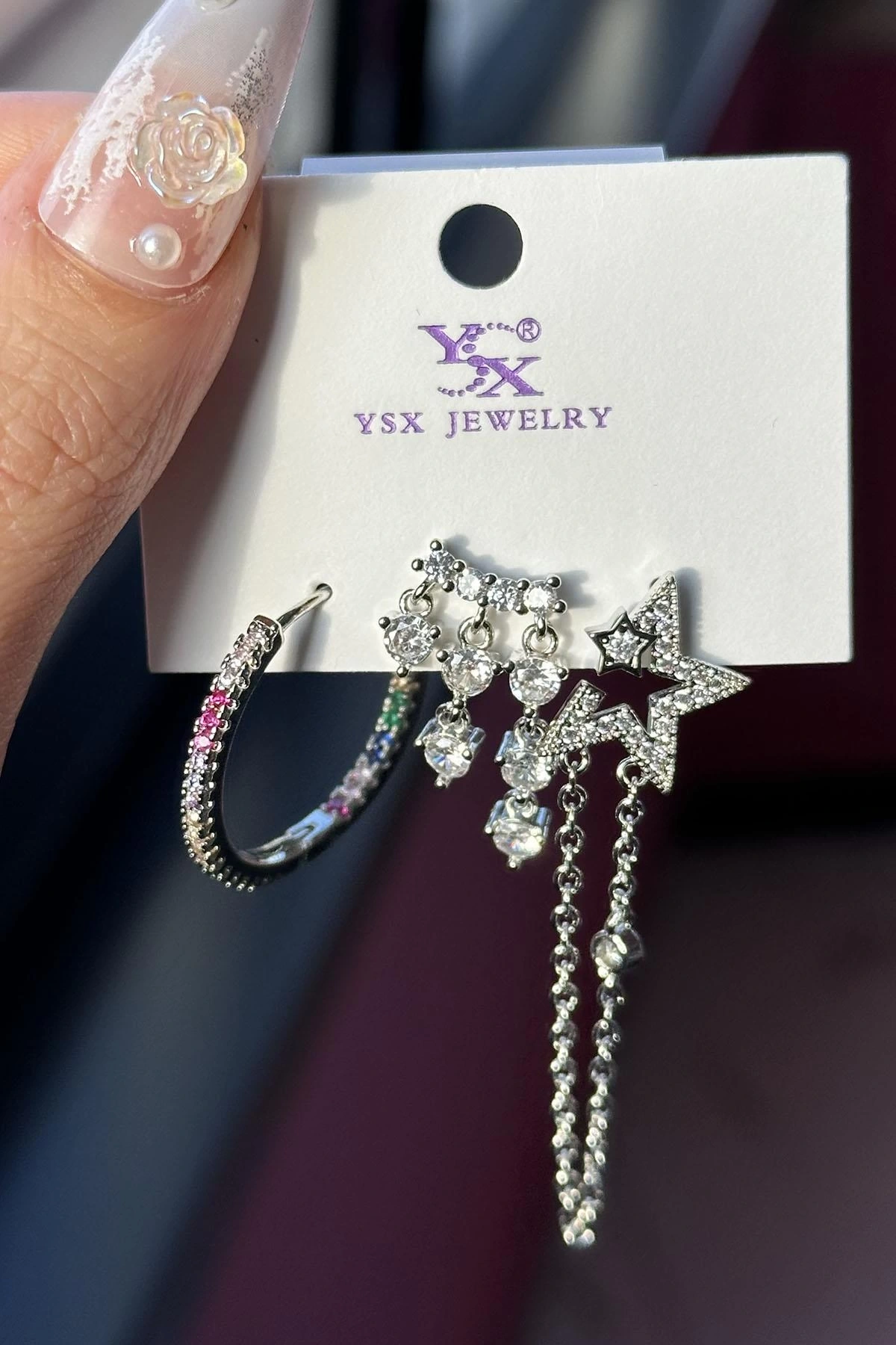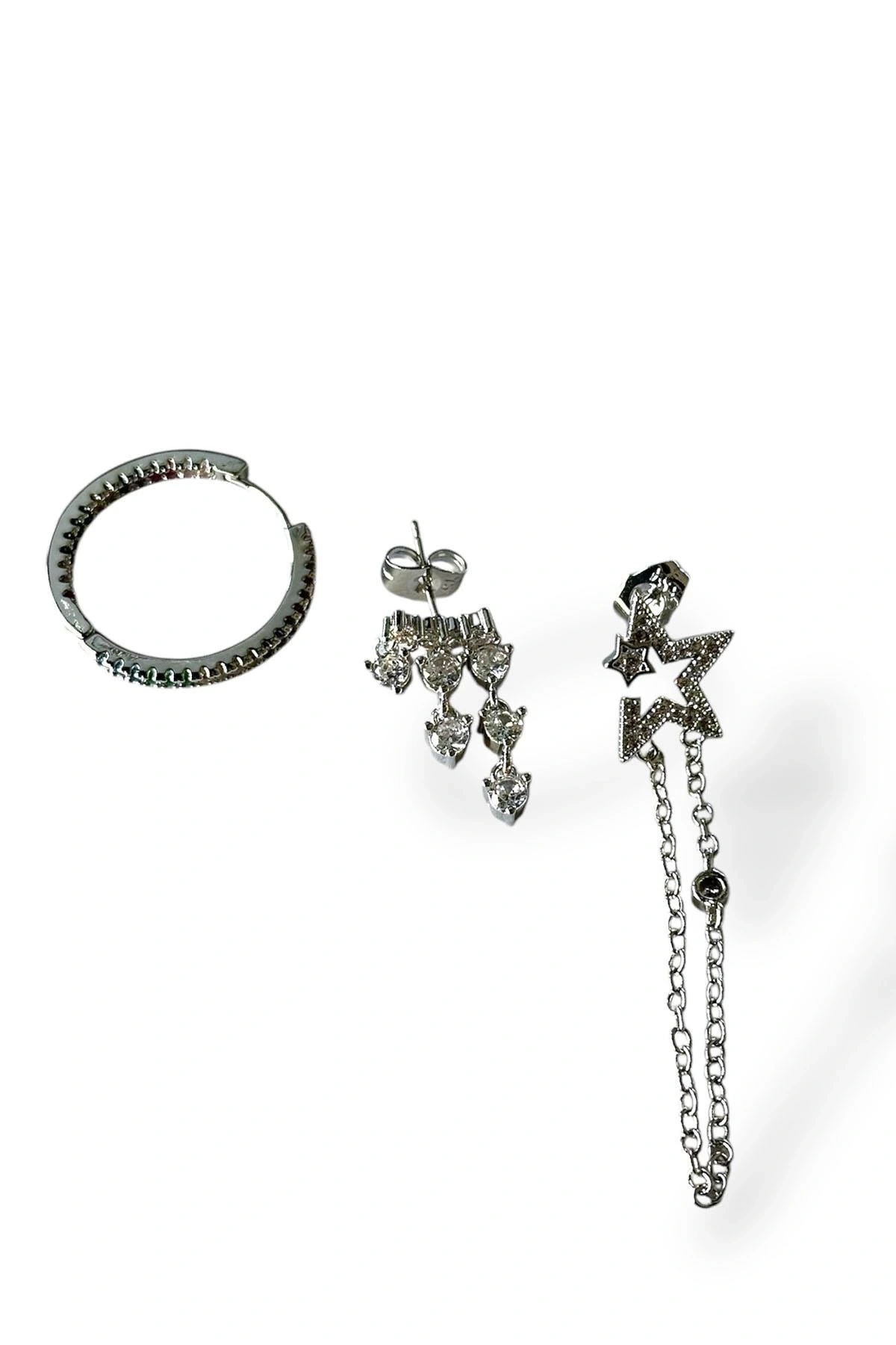 Gümüş Renk Yıldız Figürlü VİP 3'lü YSX Küpe Set