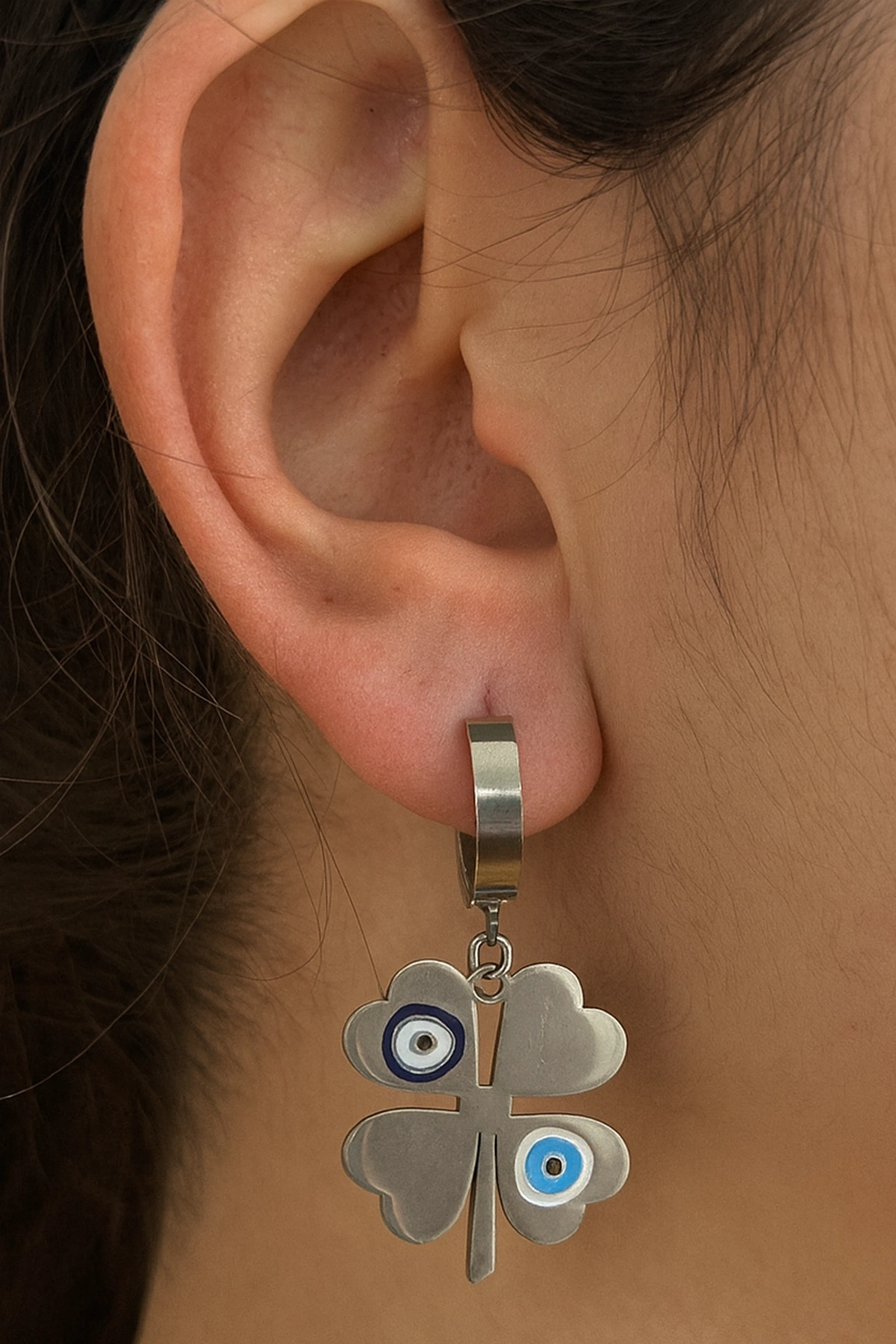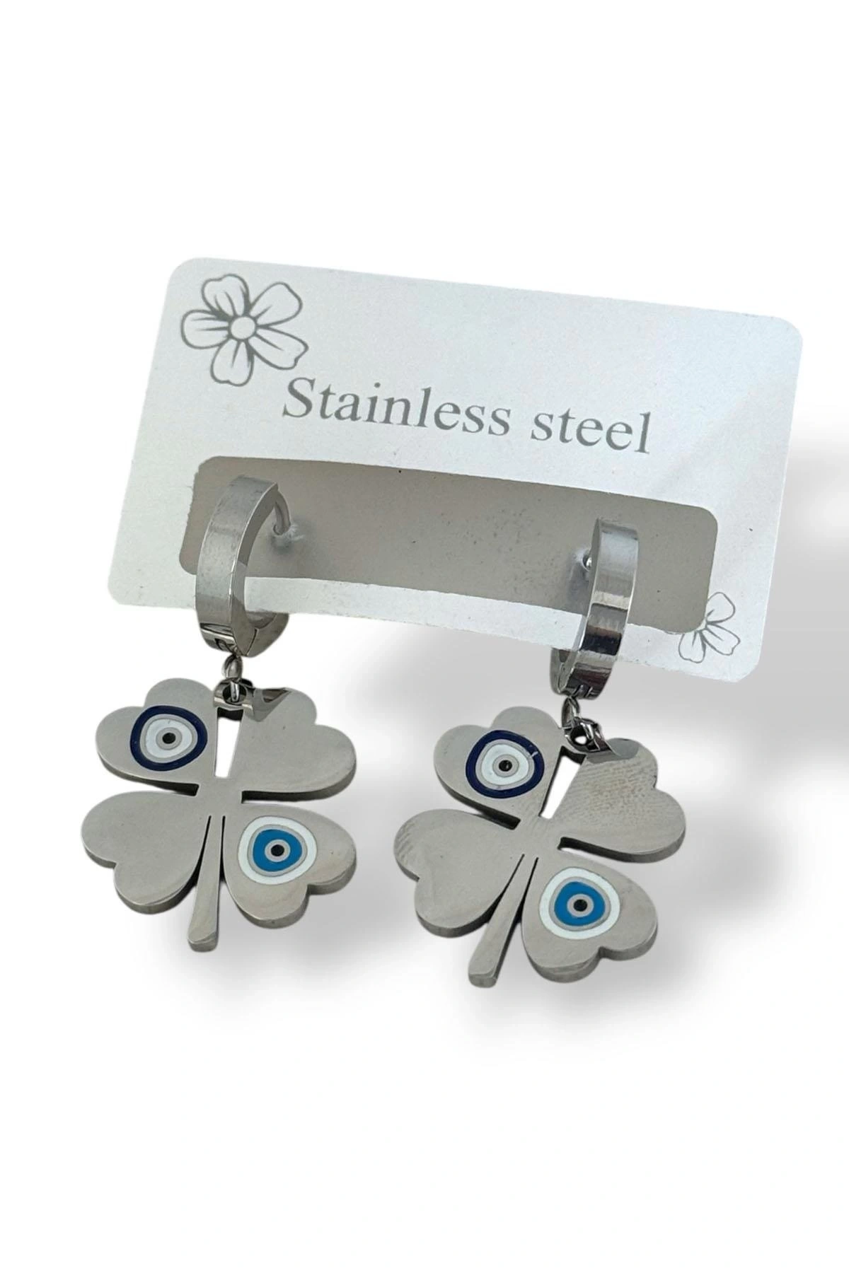 Gümüş Renk Yonca Figürlü Çelik Küpe (Çift)
