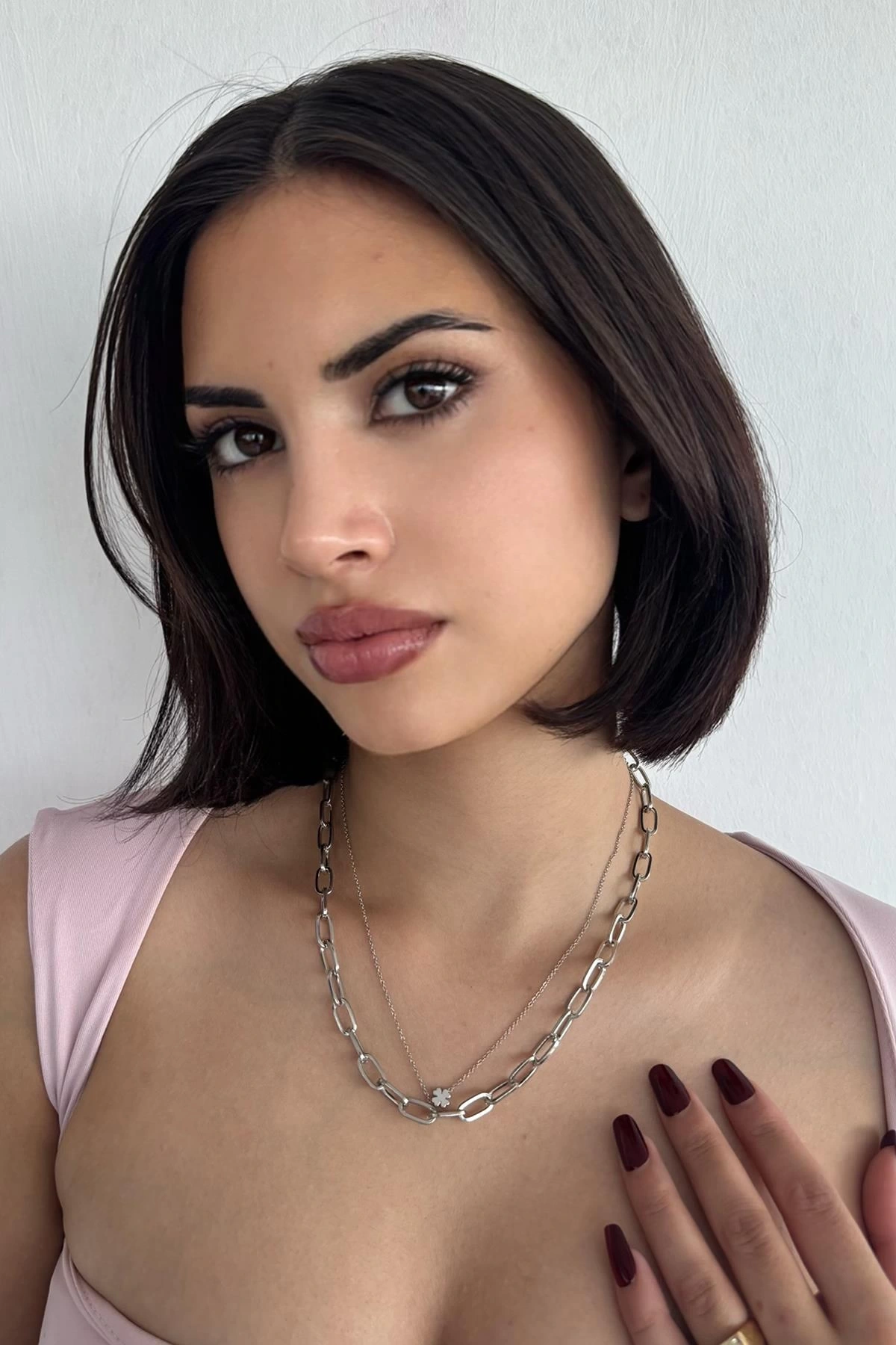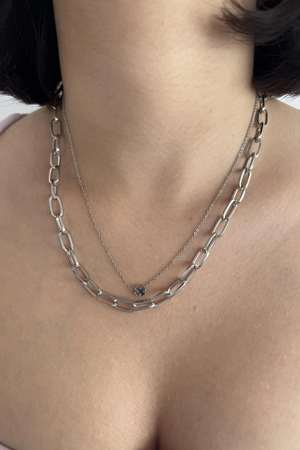 Gümüş Renk Yonca Figürlü İkili Kolye