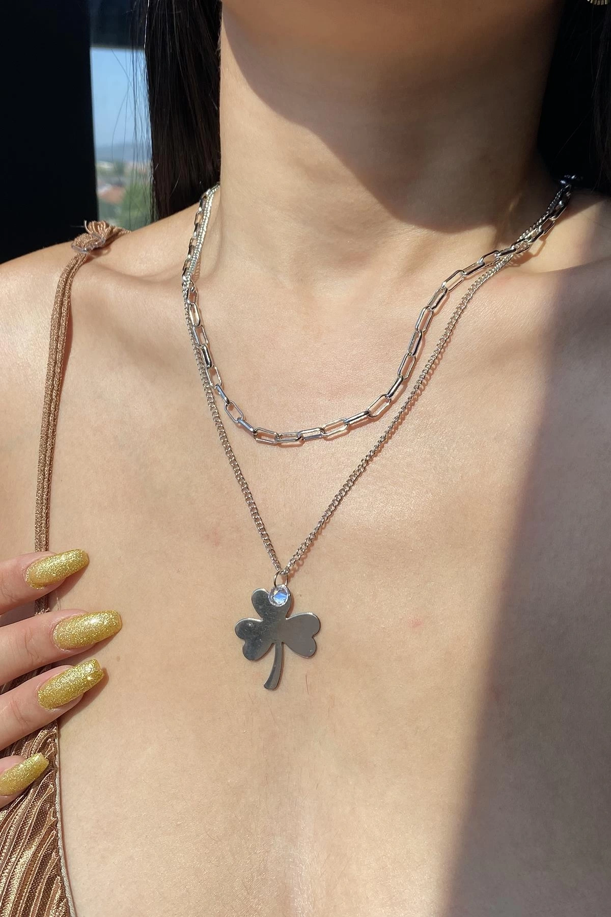 Gümüş Renk Yonca Figürlü Kolye
