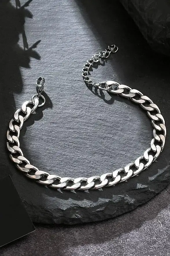 Gümüş Renk Zincir Çelik Bileklik (Unisex)