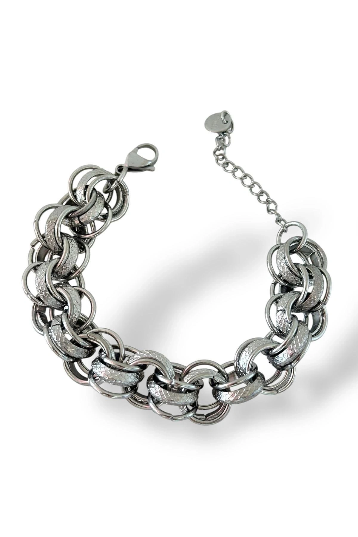 Gümüş Renk Zincir Detaylı Çelik Bileklik