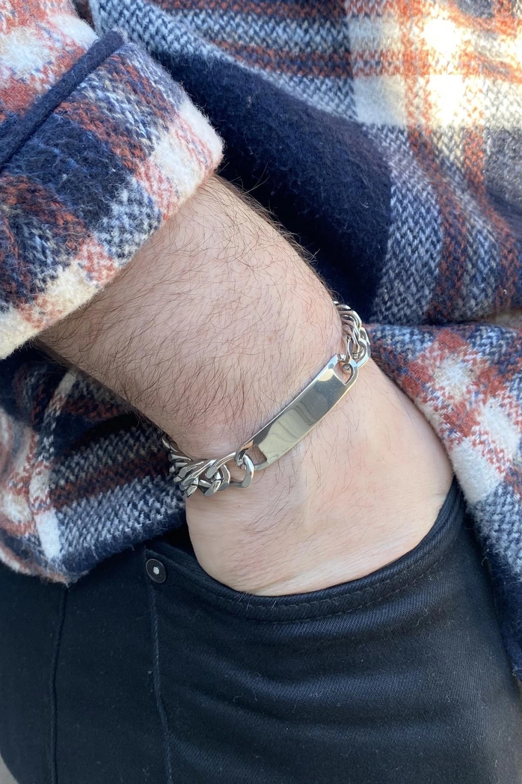 Gümüş Renk Zincir Çelik Bileklik (Unisex)