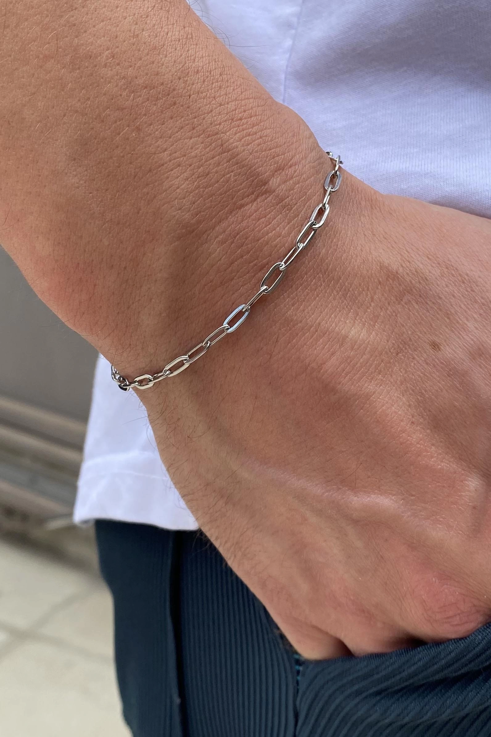 Gümüş Renk Zincir Çelik Bileklik (Unisex)