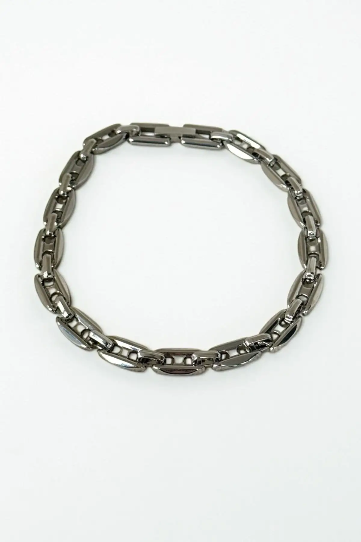 Gümüş Renk Zincir Detaylı Çelik Bileklik