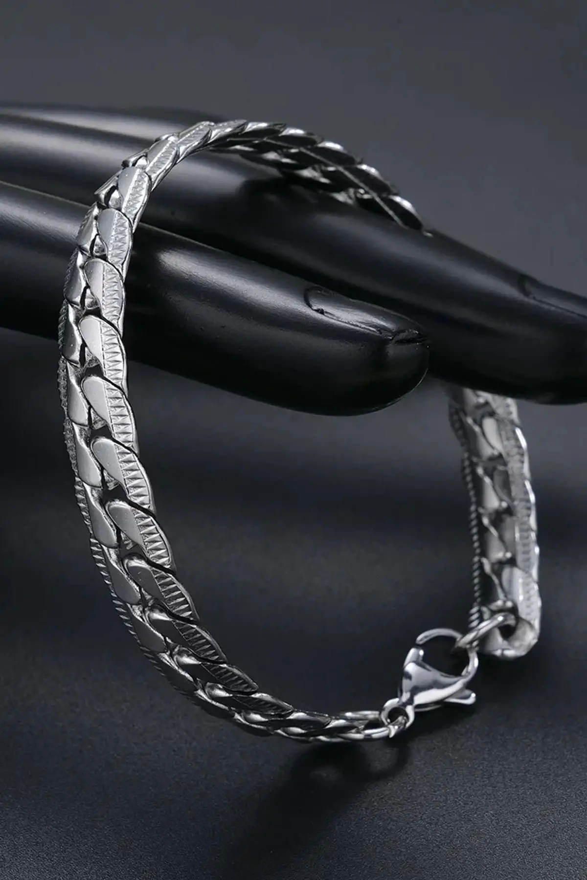 Gümüş Renk Zincir Detaylı Çelik Erkek Bileklik