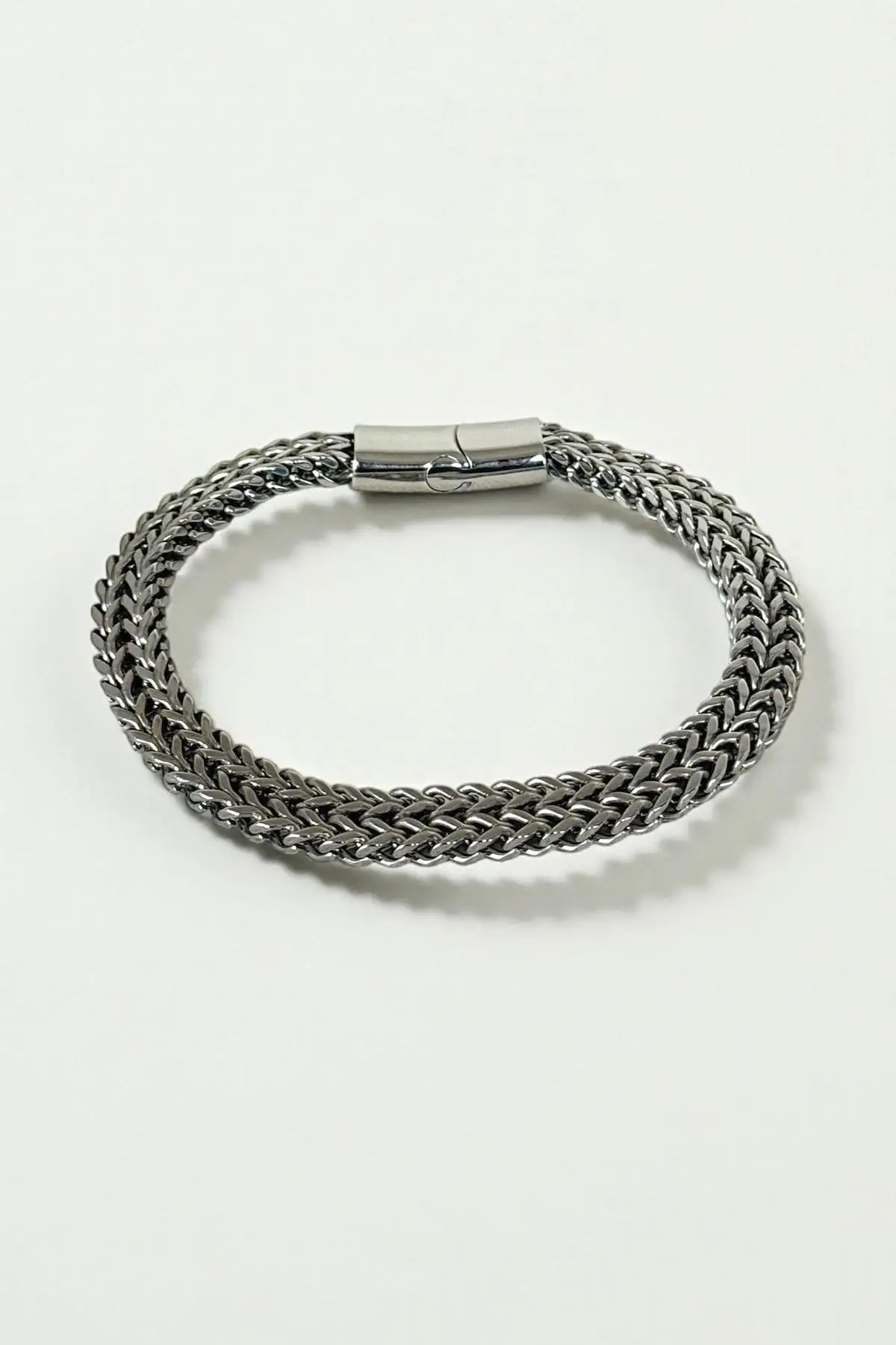 Gümüş Renk Zincir Detaylı Çelik Bileklik