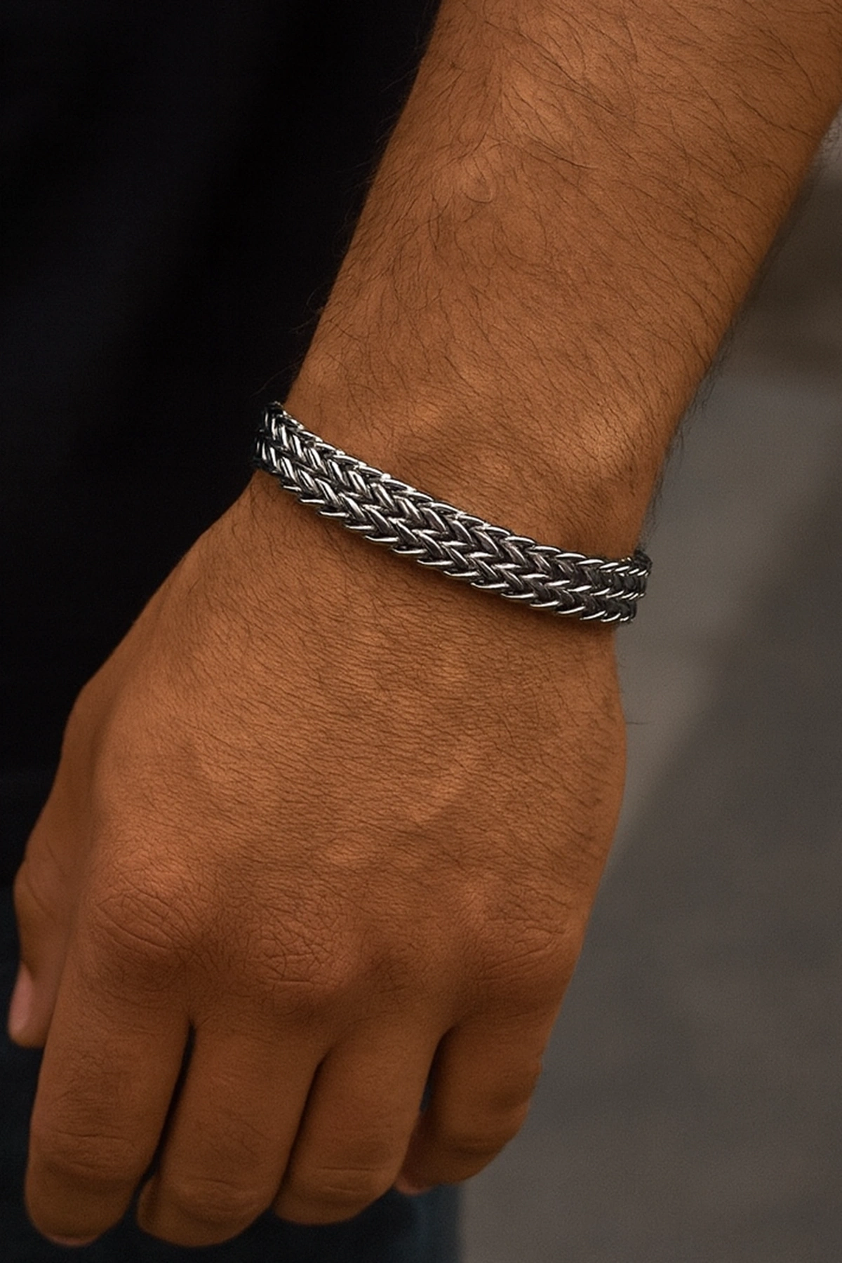 Gümüş Renk Zincir Detaylı Çelik Erkek Bileklik
