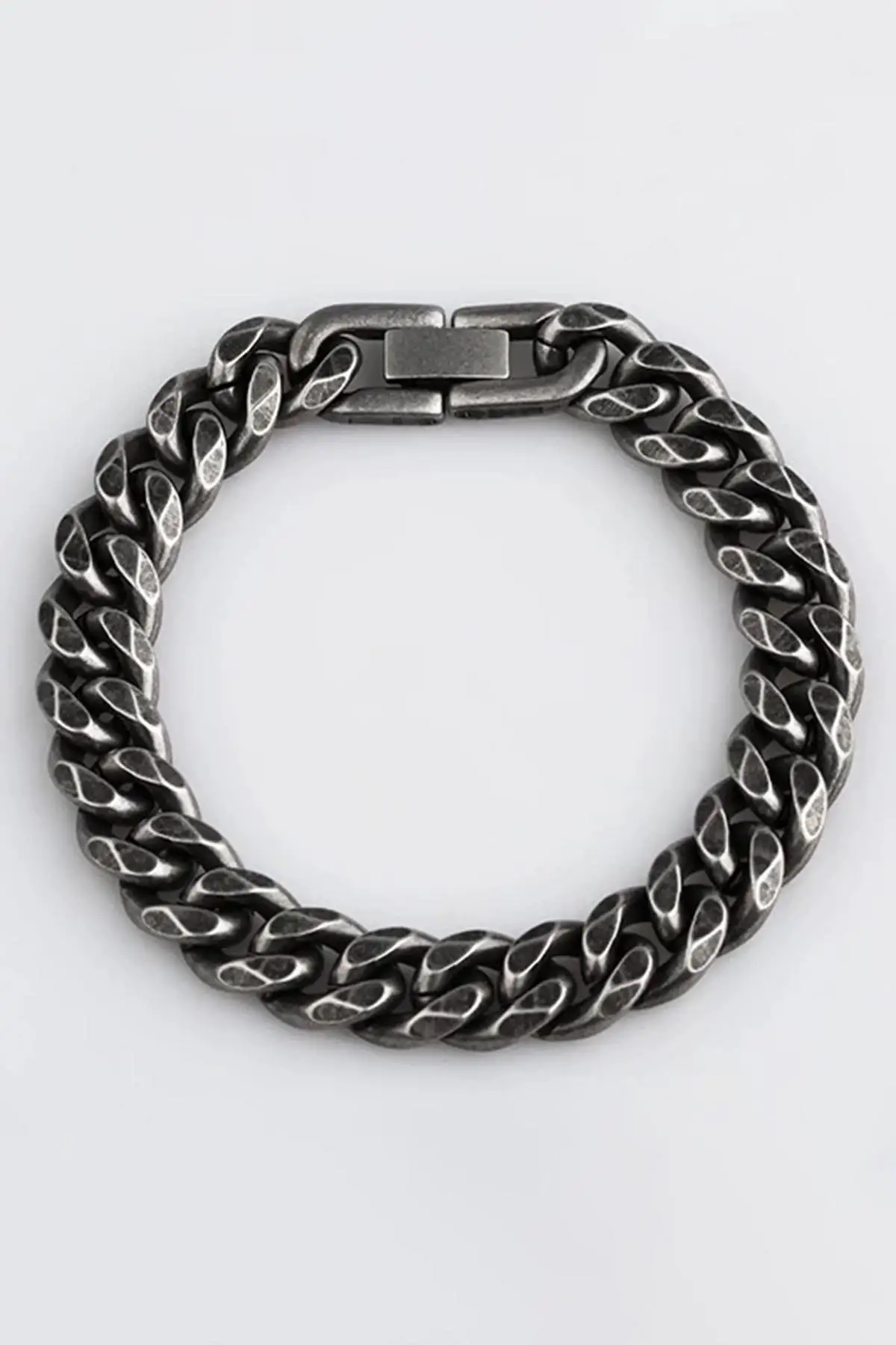 Gümüş Renk Zincir Detaylı Çelik Erkek Bileklik