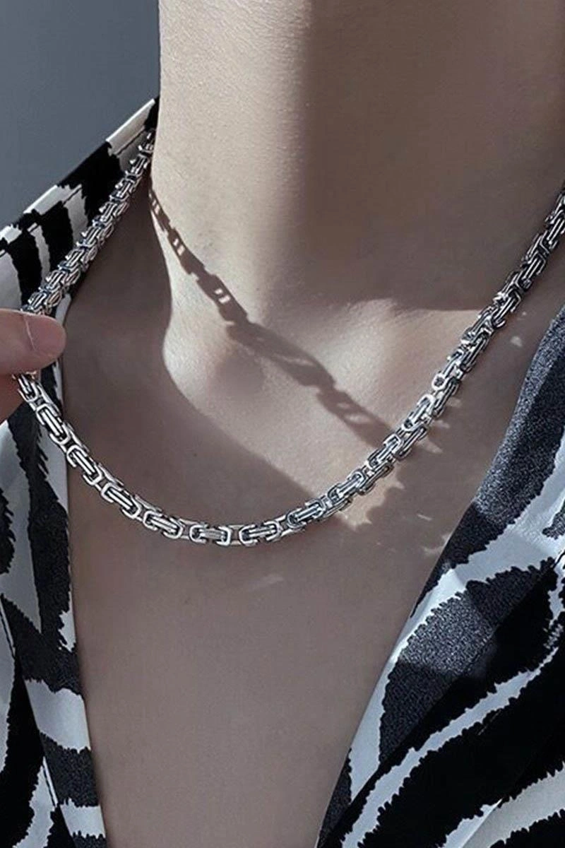 Gümüş Renk Zincir Detaylı Çelik Erkek Kolye