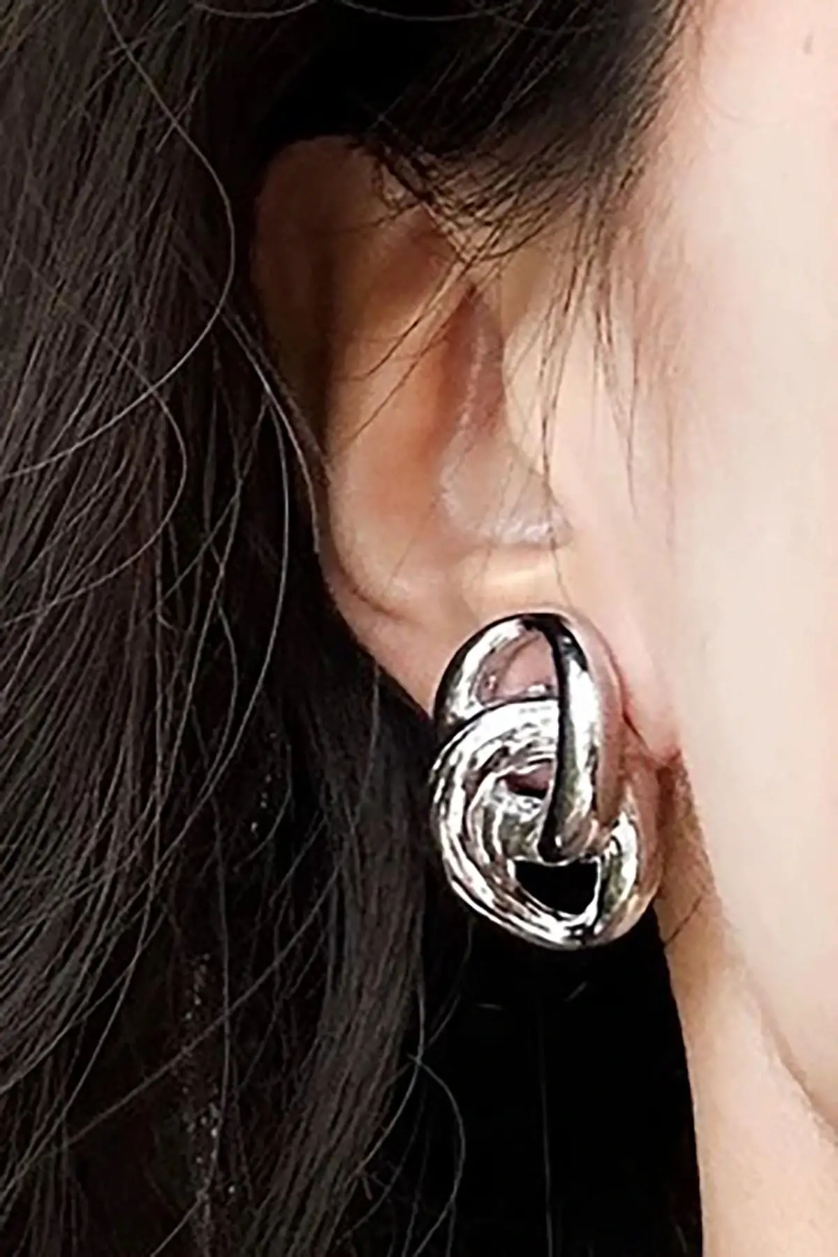 Gümüş Renk Zincir Detaylı Çelik Küpe (Çift)