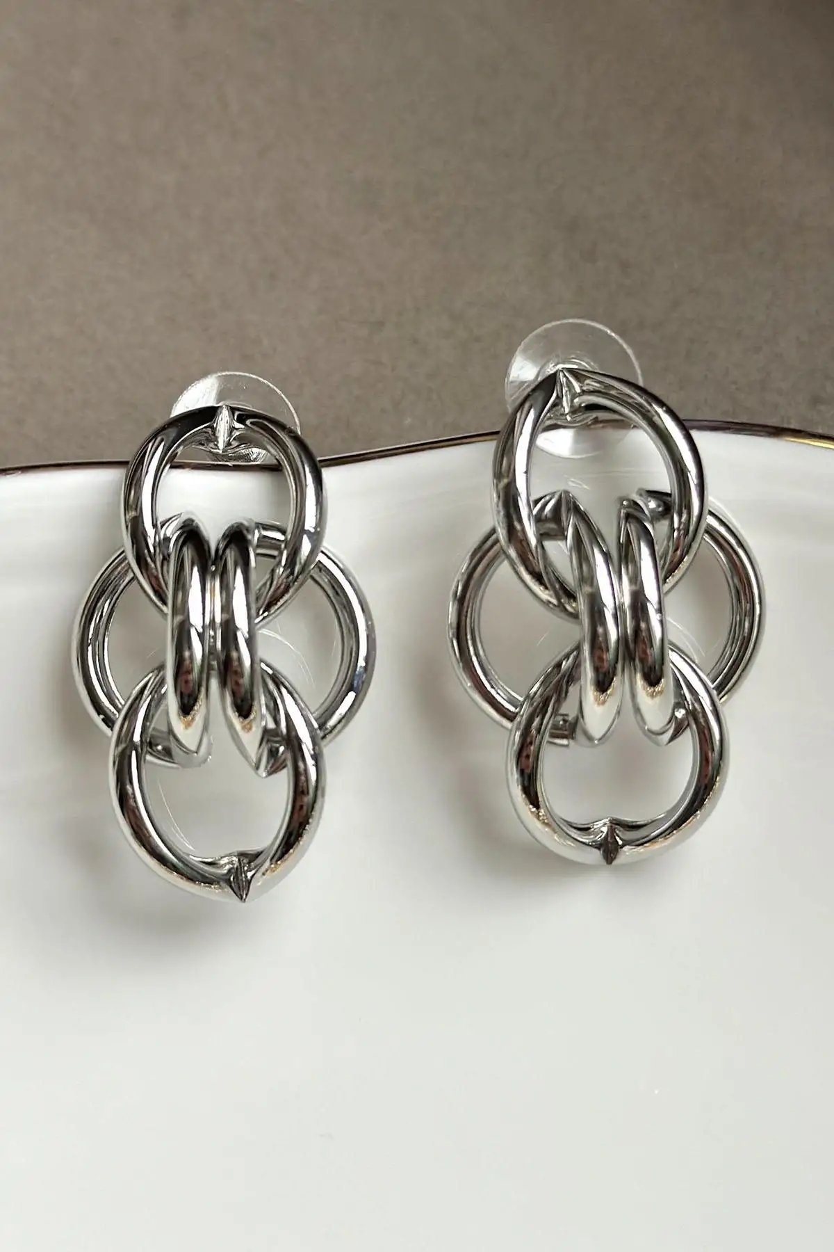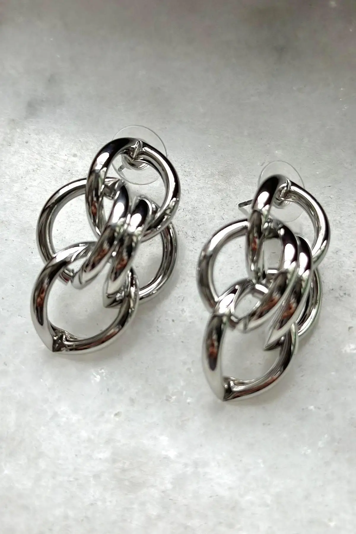 Gümüş Renk Zincir Detaylı Çelik Küpe (Çift)