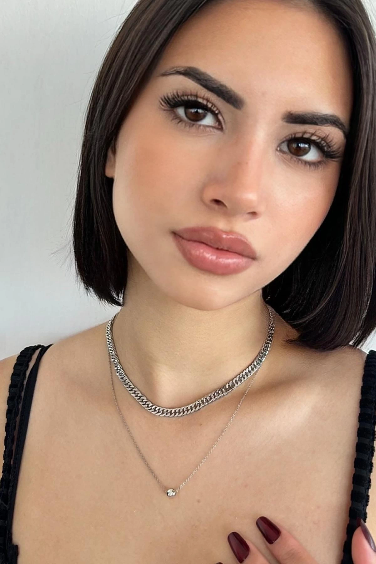 Gümüş Renk Zincir Detaylı İkili Kolye