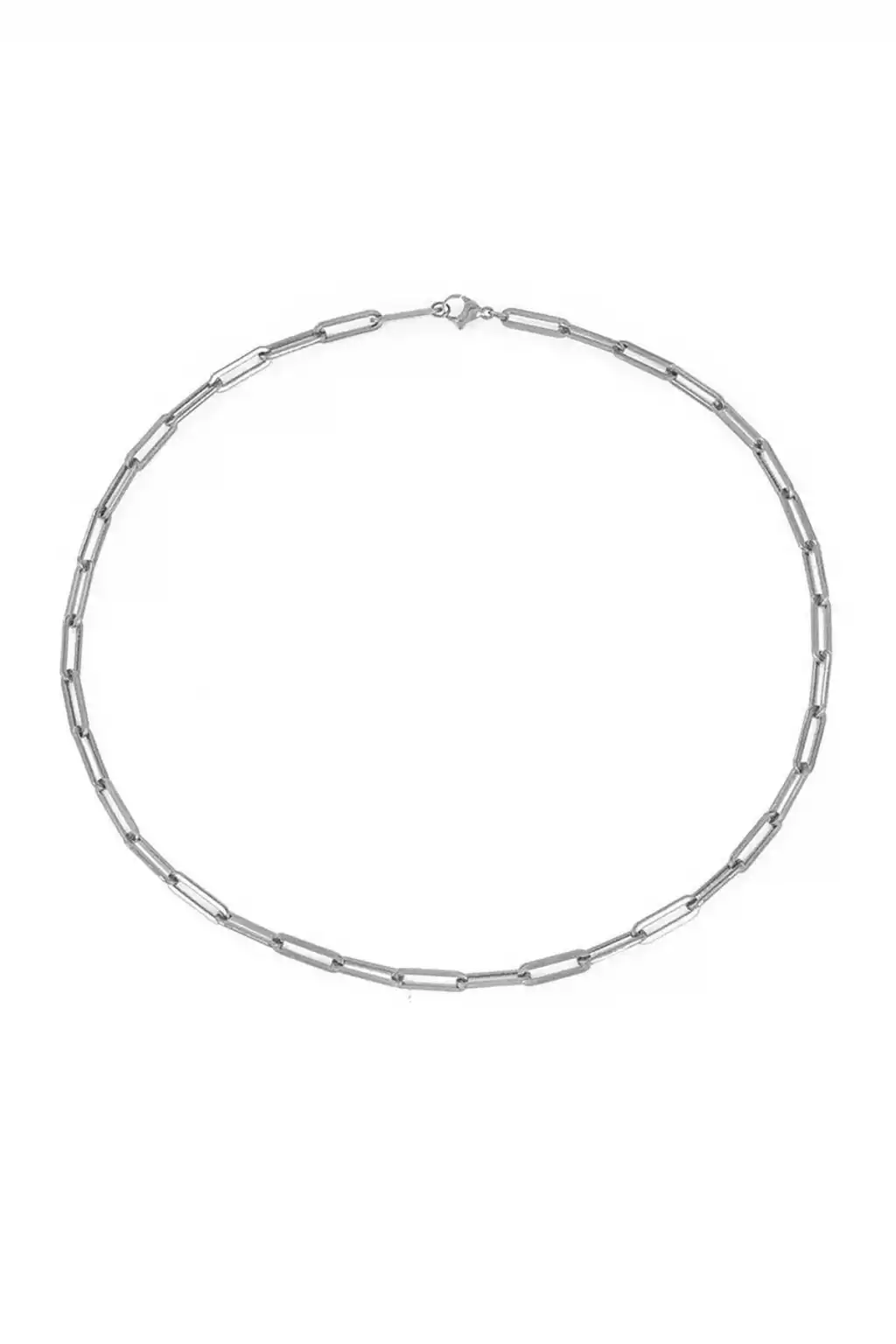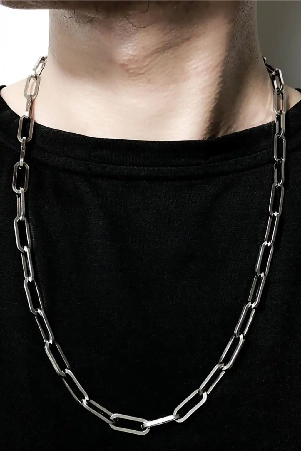 Gümüş Renk Zincir Detaylı Unisex Çelik Kolye