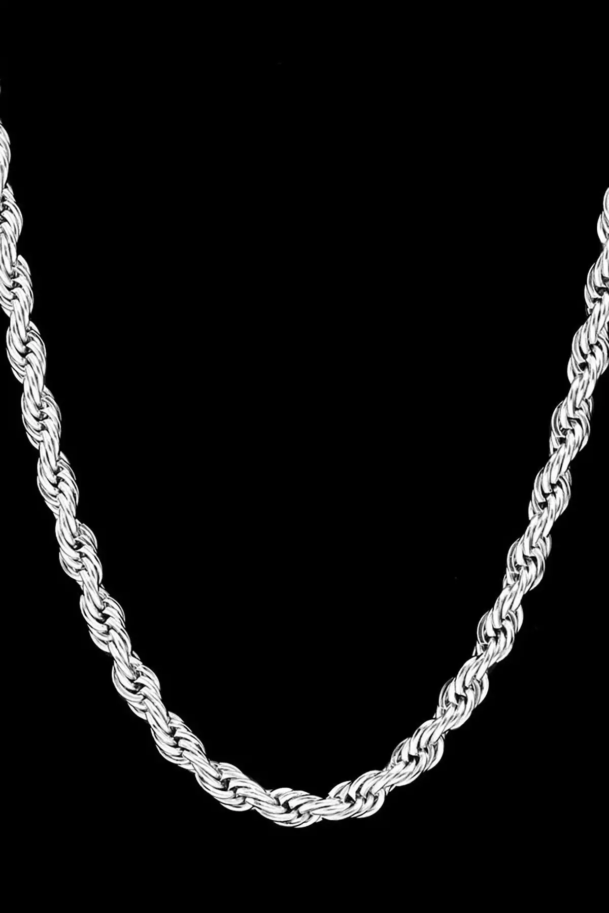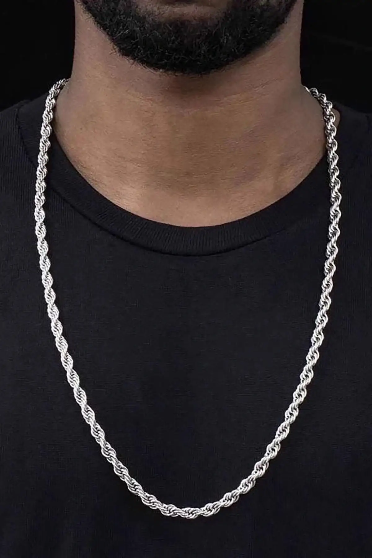 Gümüş Renk Zincir Detaylı Unisex Çelik Kolye