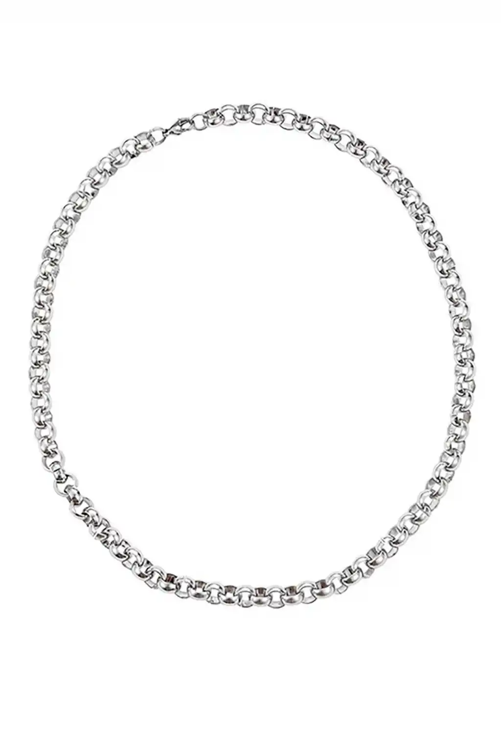 Gümüş Renk Zincir Detaylı Unisex Çelik Kolye