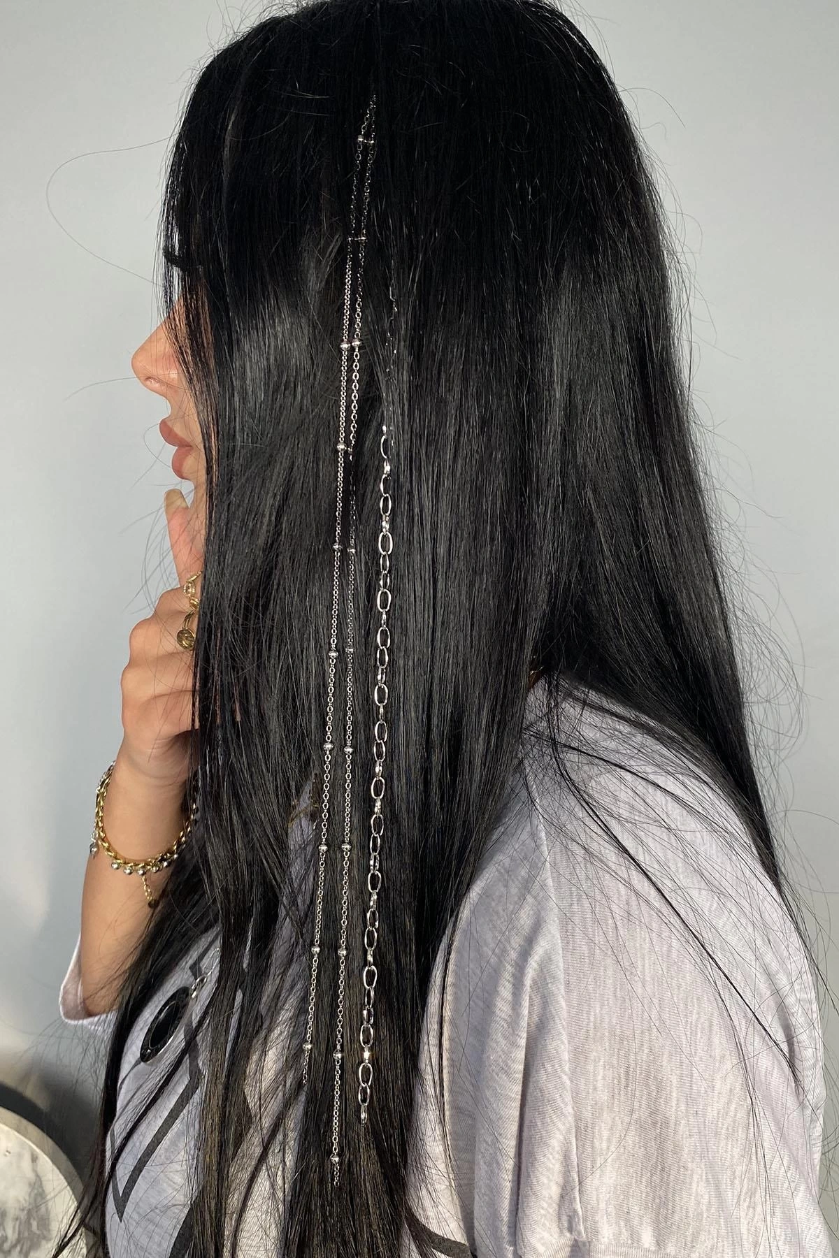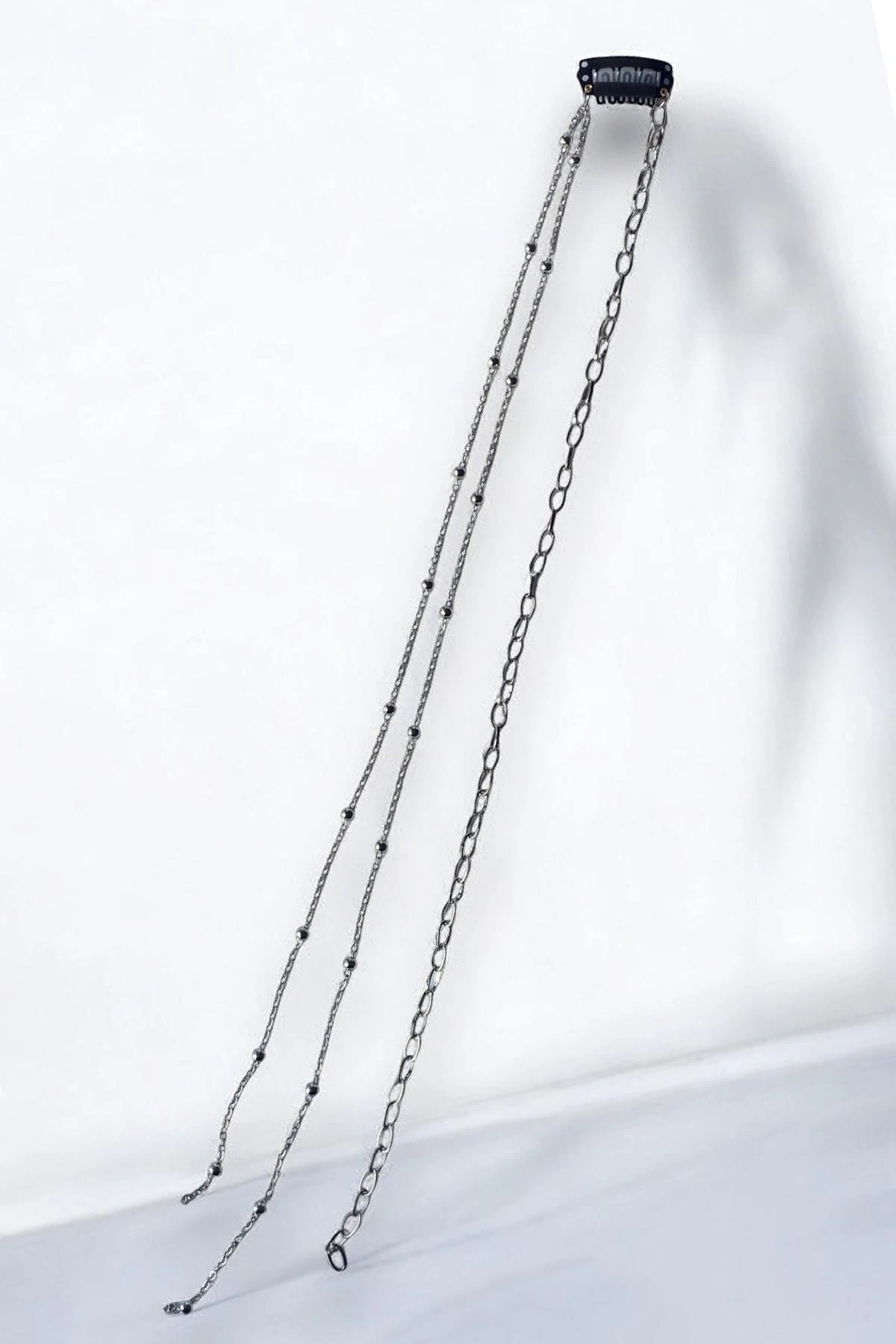 Gümüş Renk Zincir Detaylı Yan Postiş