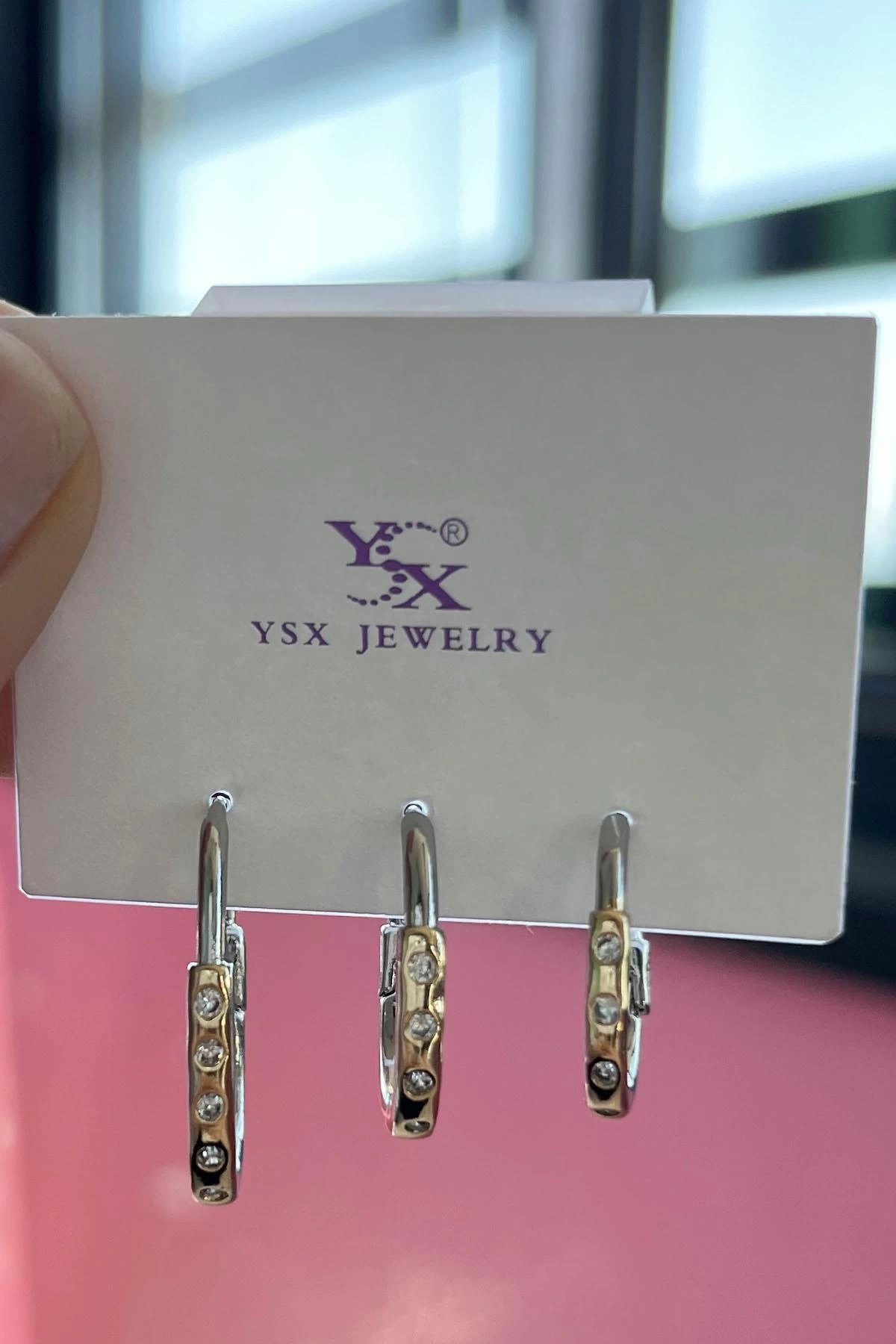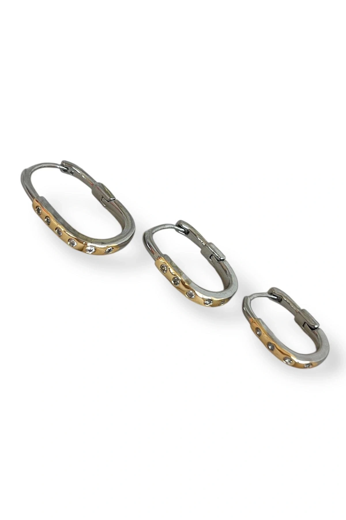 Gümüş Ve Altın Renk Çarpı Detaylı Taşlı VİP 3'lü YSX Küpe Set