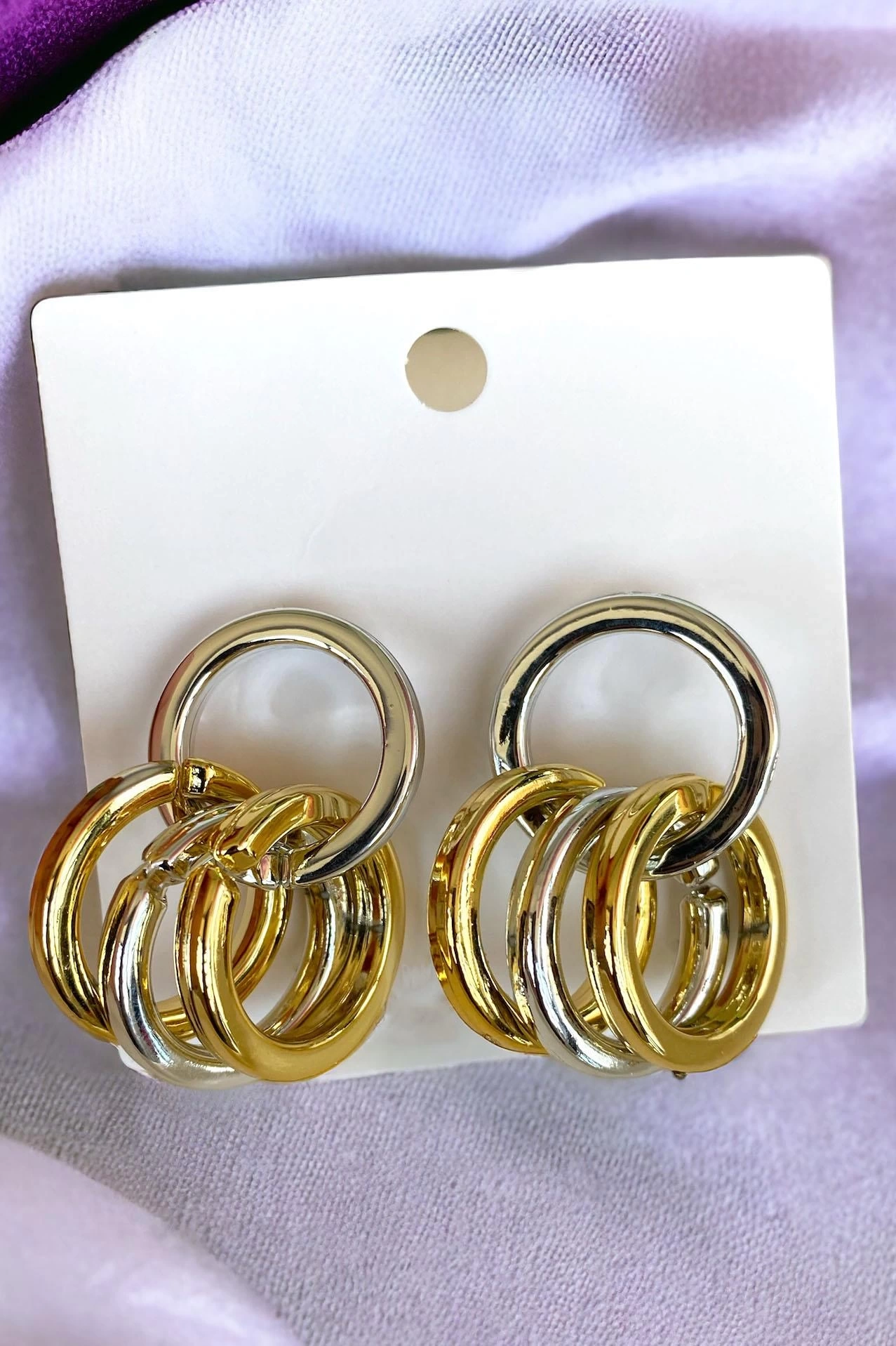 Gümüş Ve Altın Renk Halka Figürlü Sallantılı Küpe (Çift)