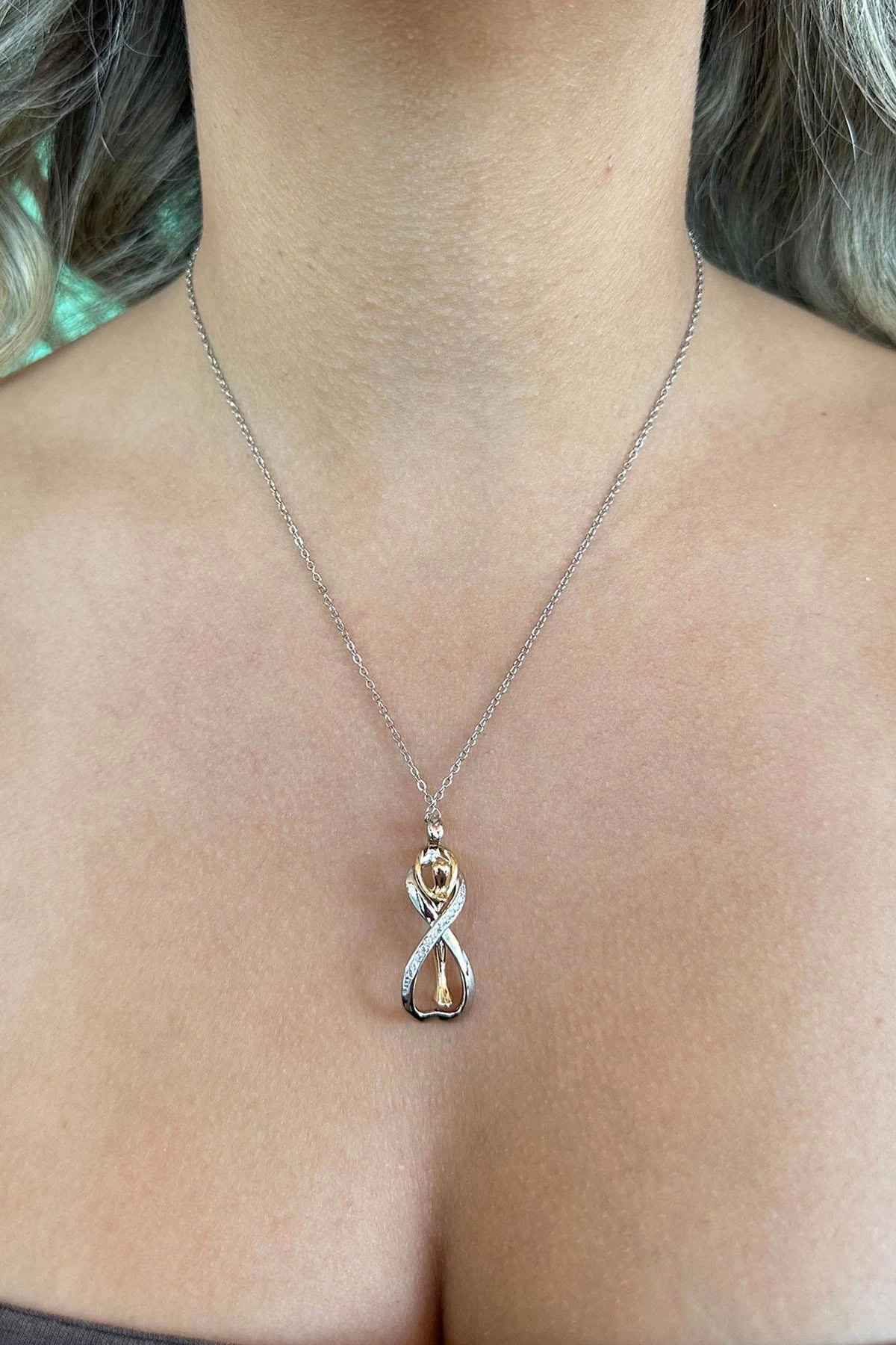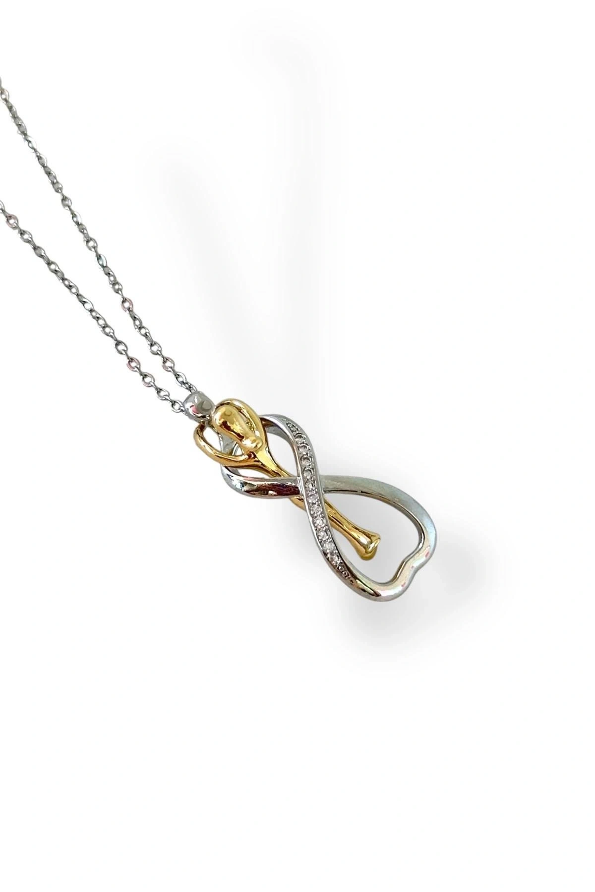 Gümüş Ve Altın Renk Sarılan Çelik Çift Kolyesi