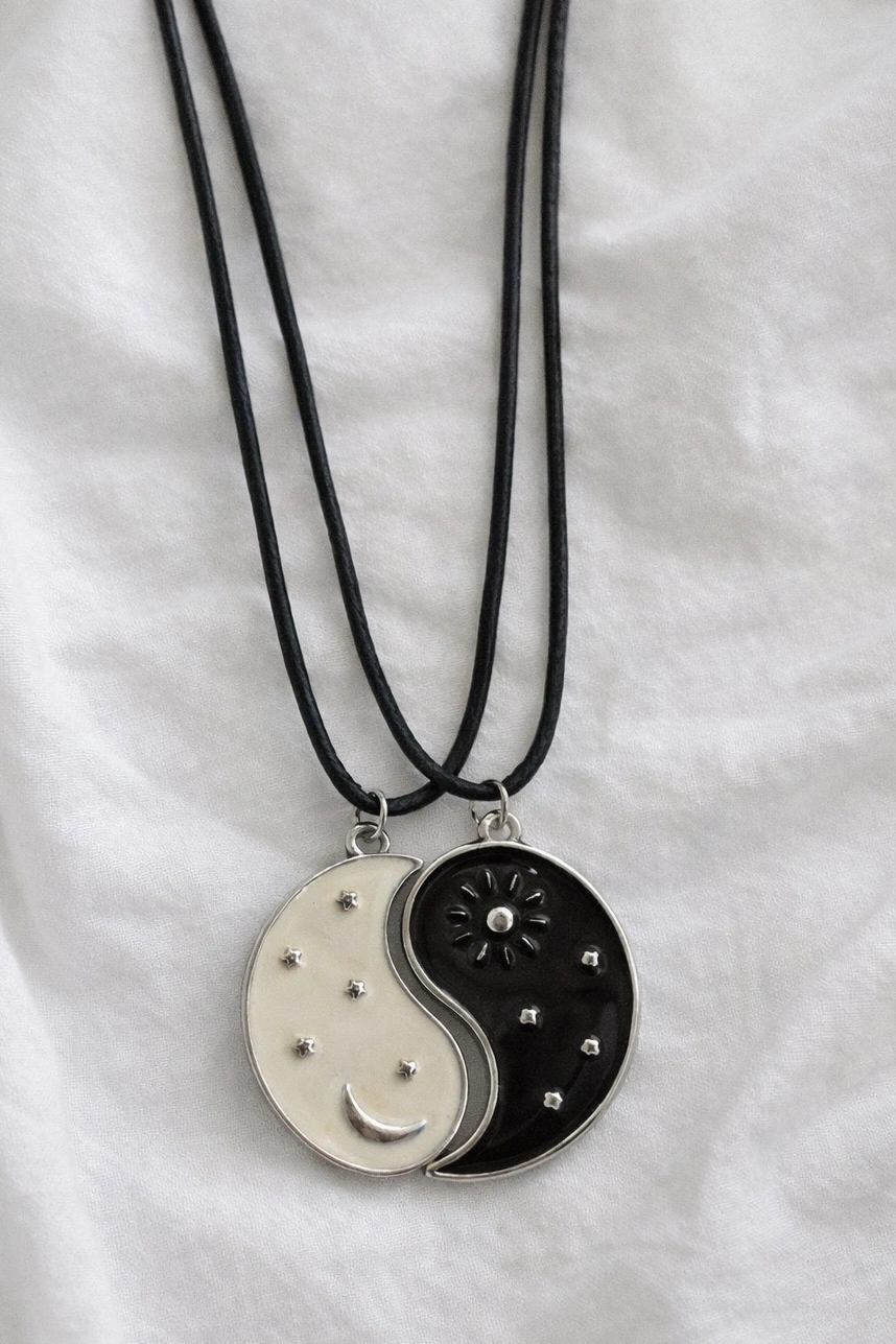 Gümüş Ve Ay Figürlü İkili Çelik Çift/ Best Friend Kolyesi