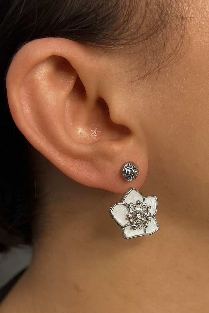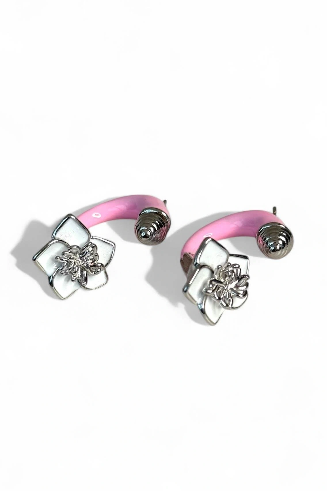 Gümüş Ve Pembe Renk Çiçek Figürlü YSX Küpe (Çift)
