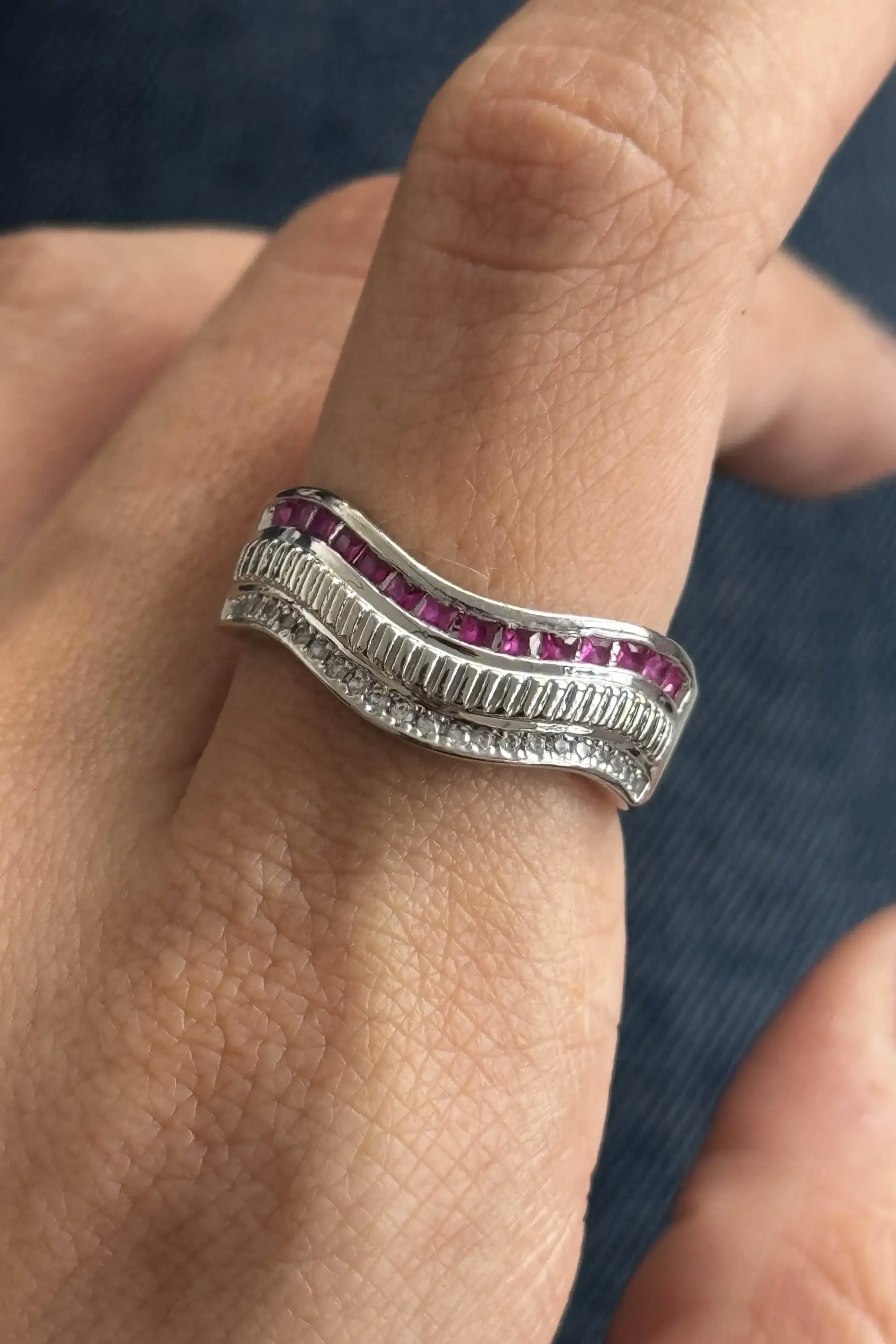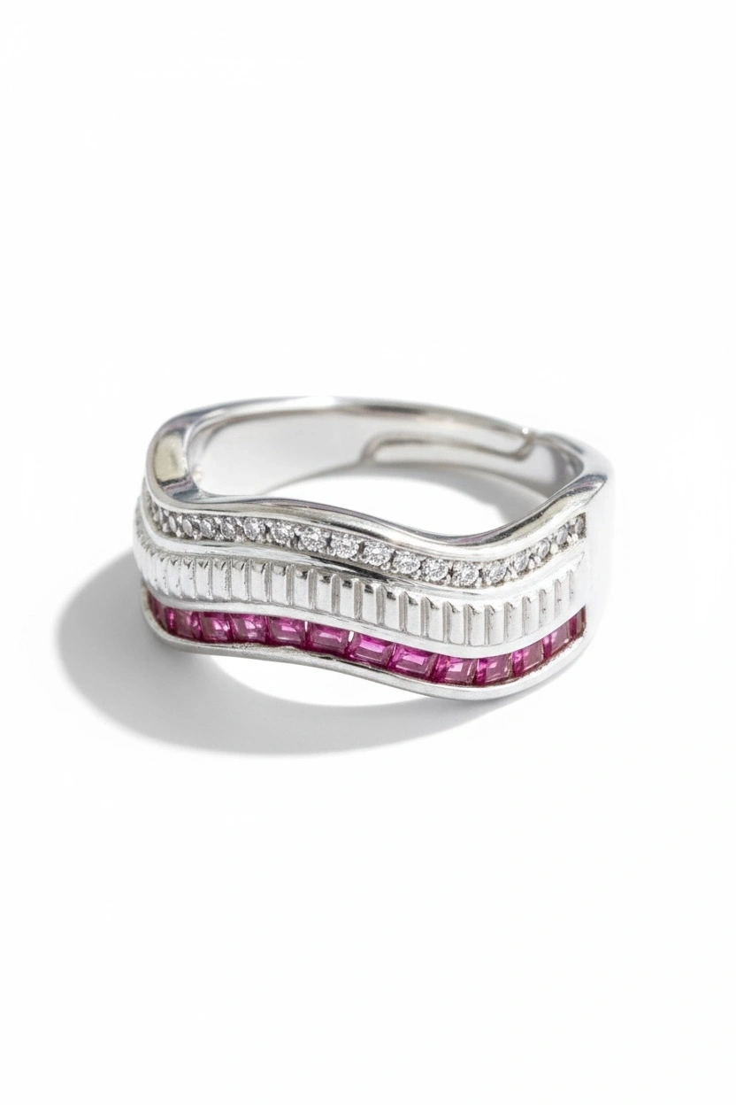 Gümüş Ve Pembe Renk Taş Detaylı 14K Altın Kaplama Ayarlanabilir Yüzük