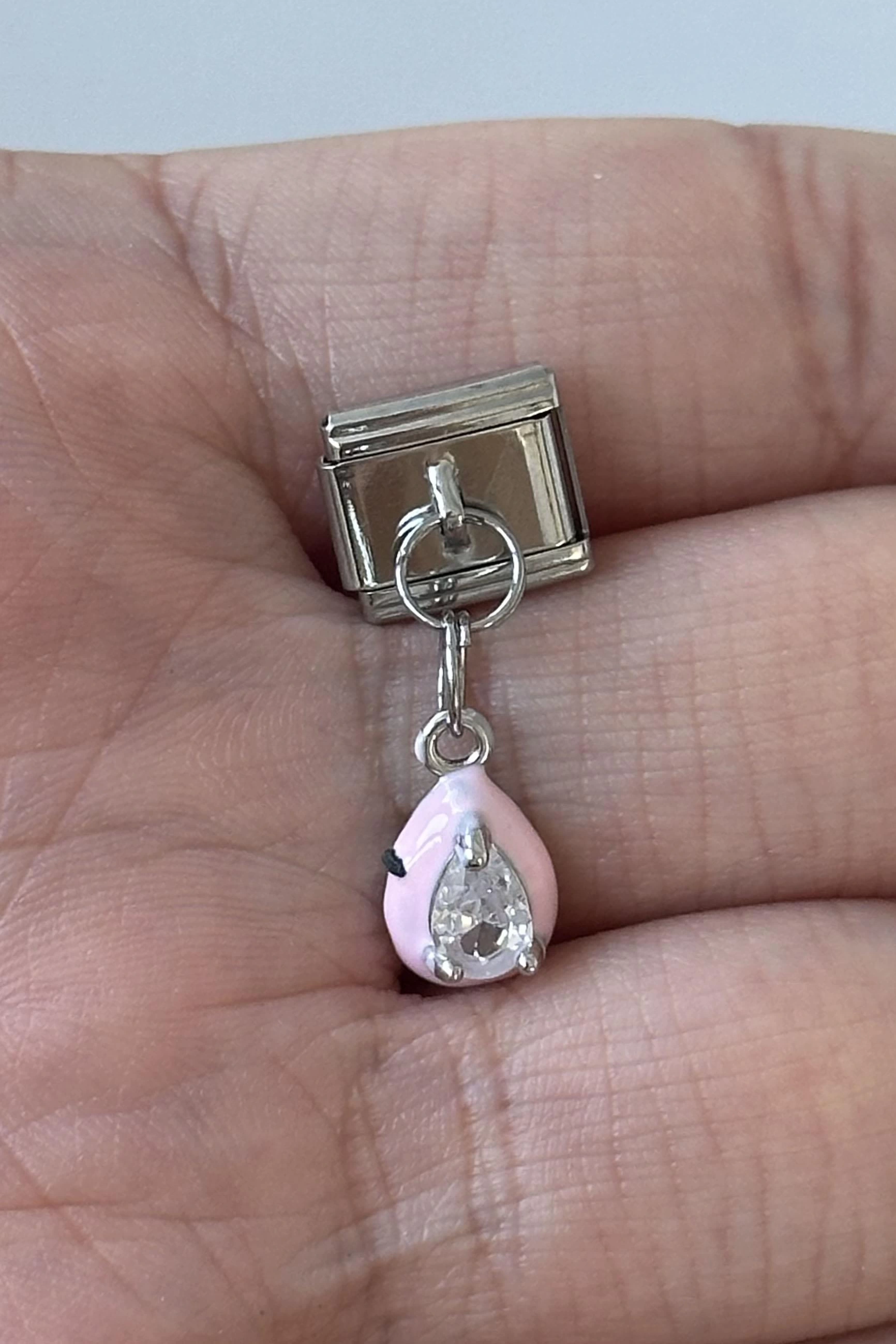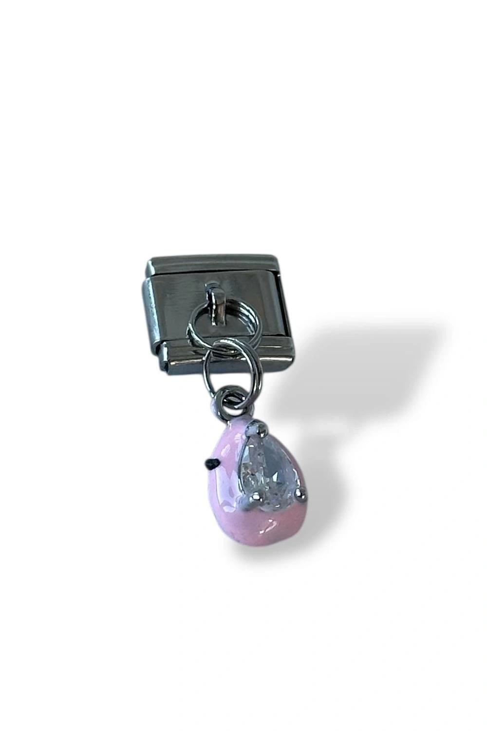 Gümüş Ve Pembe Renk Taş Detaylı Çelik Nomination Charm (Tek)