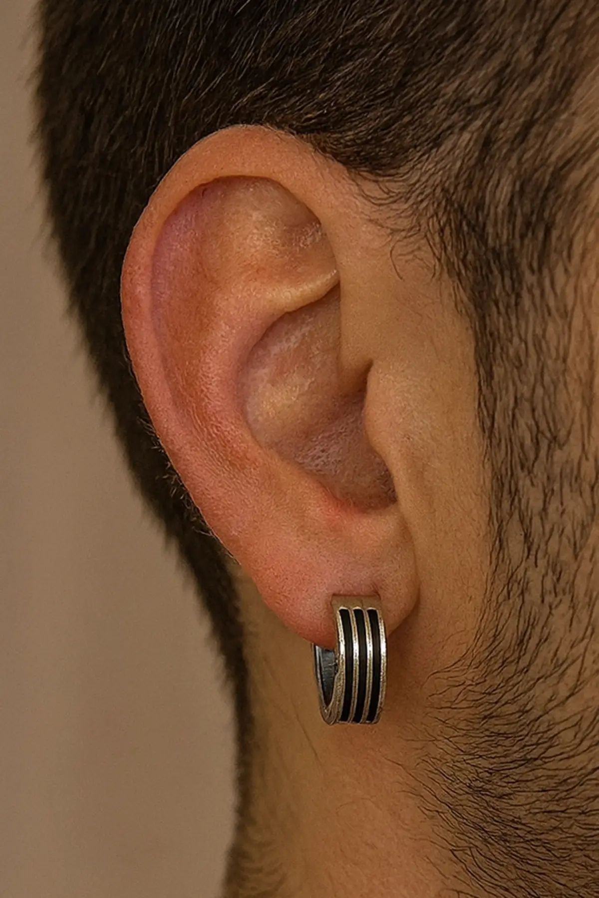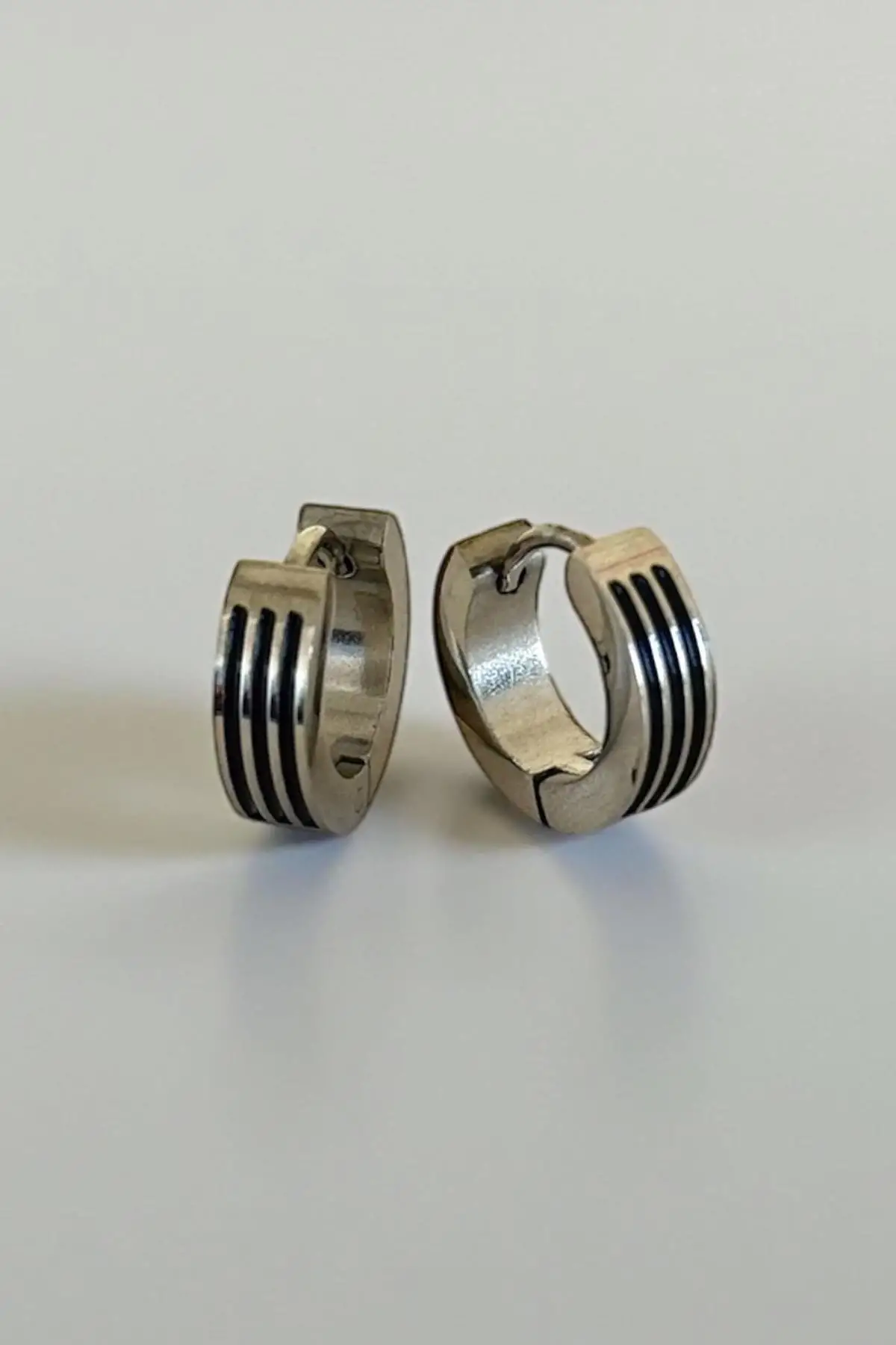 Gümüş Ve Siyah Renk Çelik Erkek Küpe (Çift)
