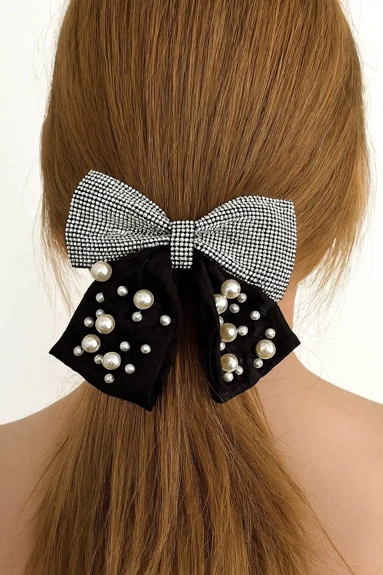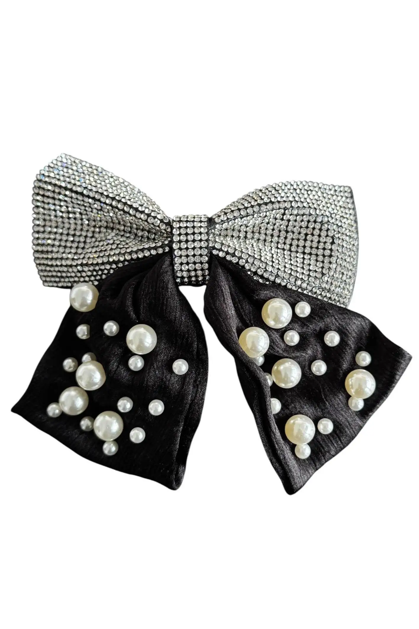 Gümüş Ve Siyah Renk İnci Ve Taş Detaylı Otomat Toka