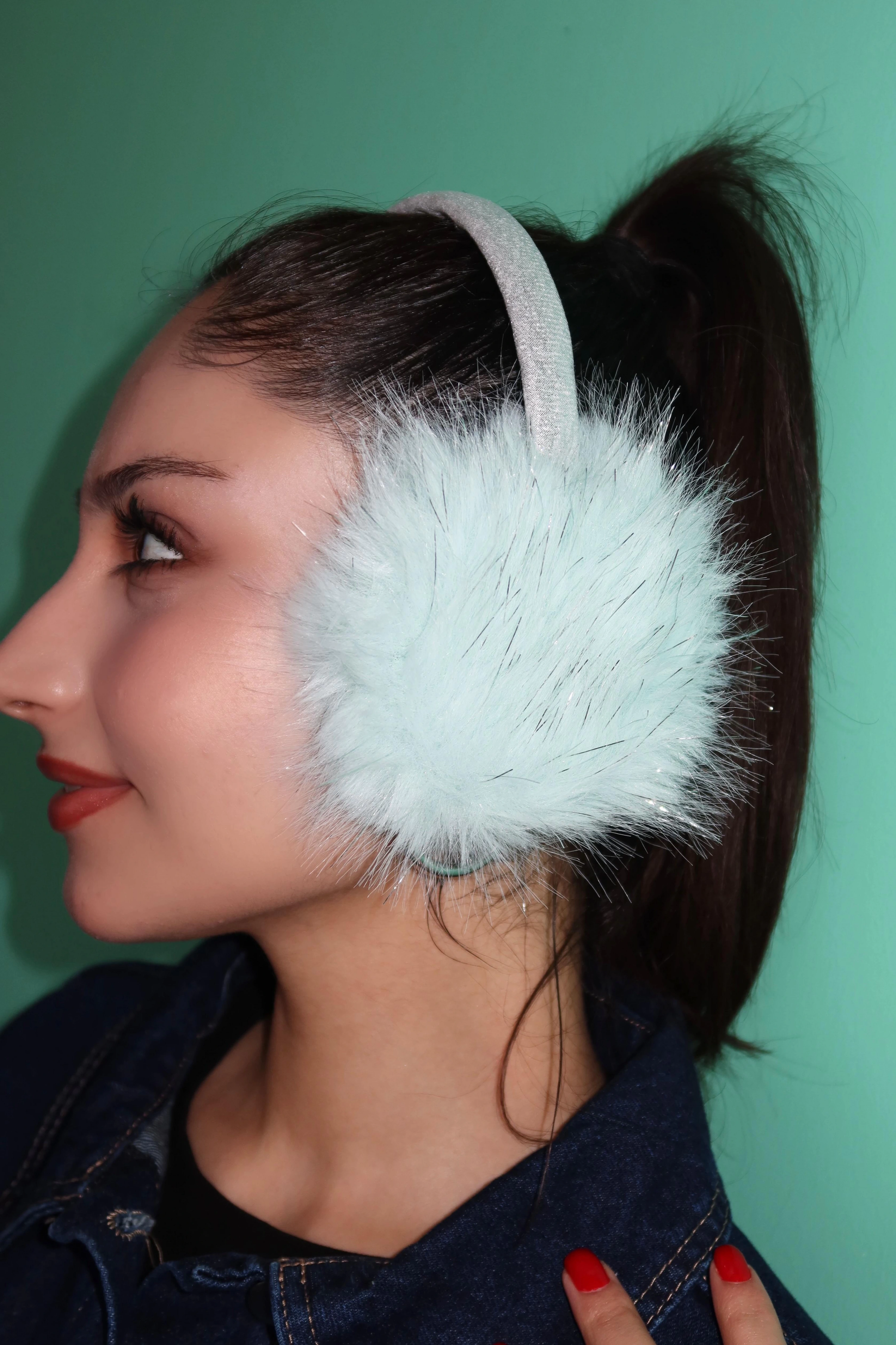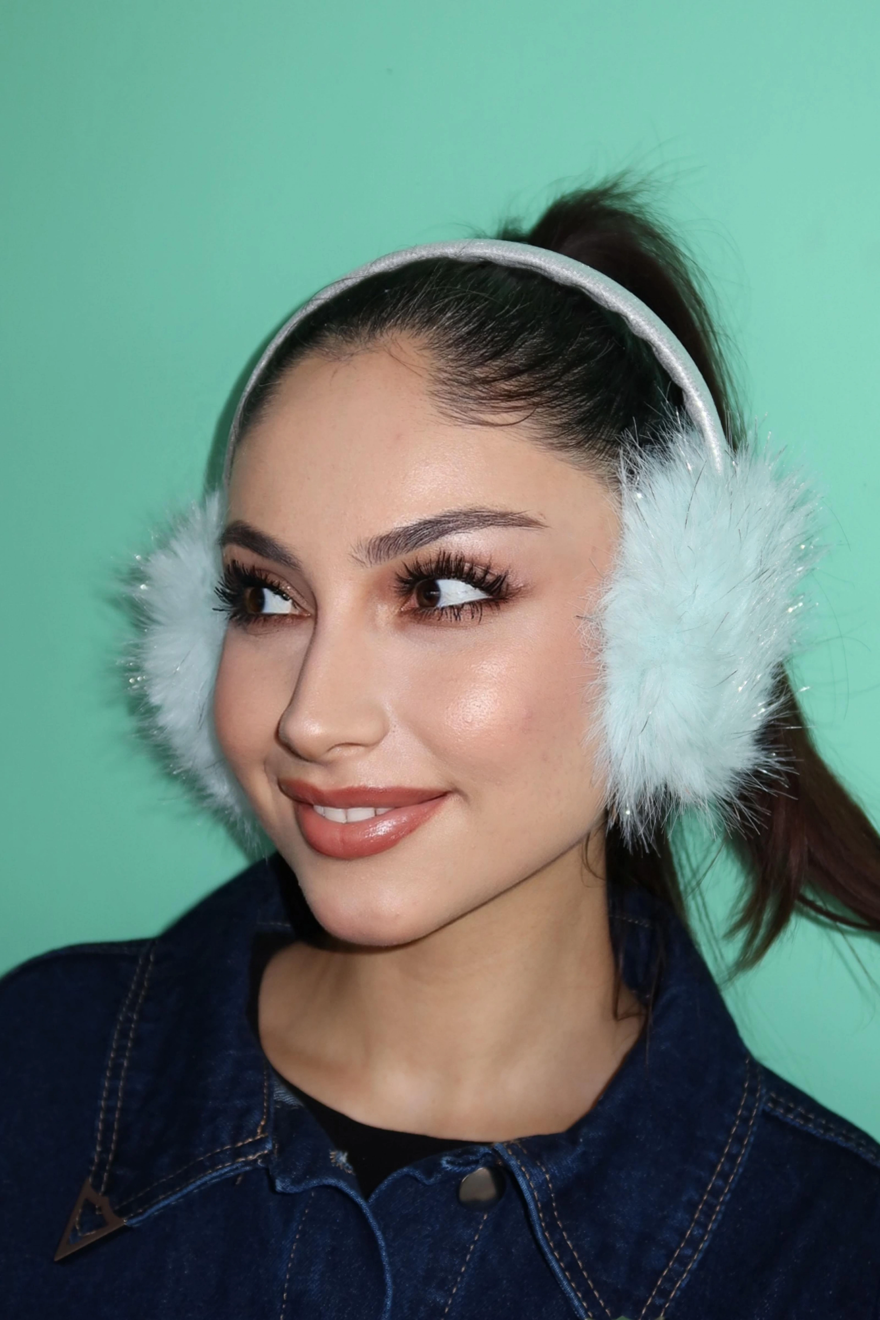Gümüş Ve Su Yeşili Renk Simli Peluş Kulaklık