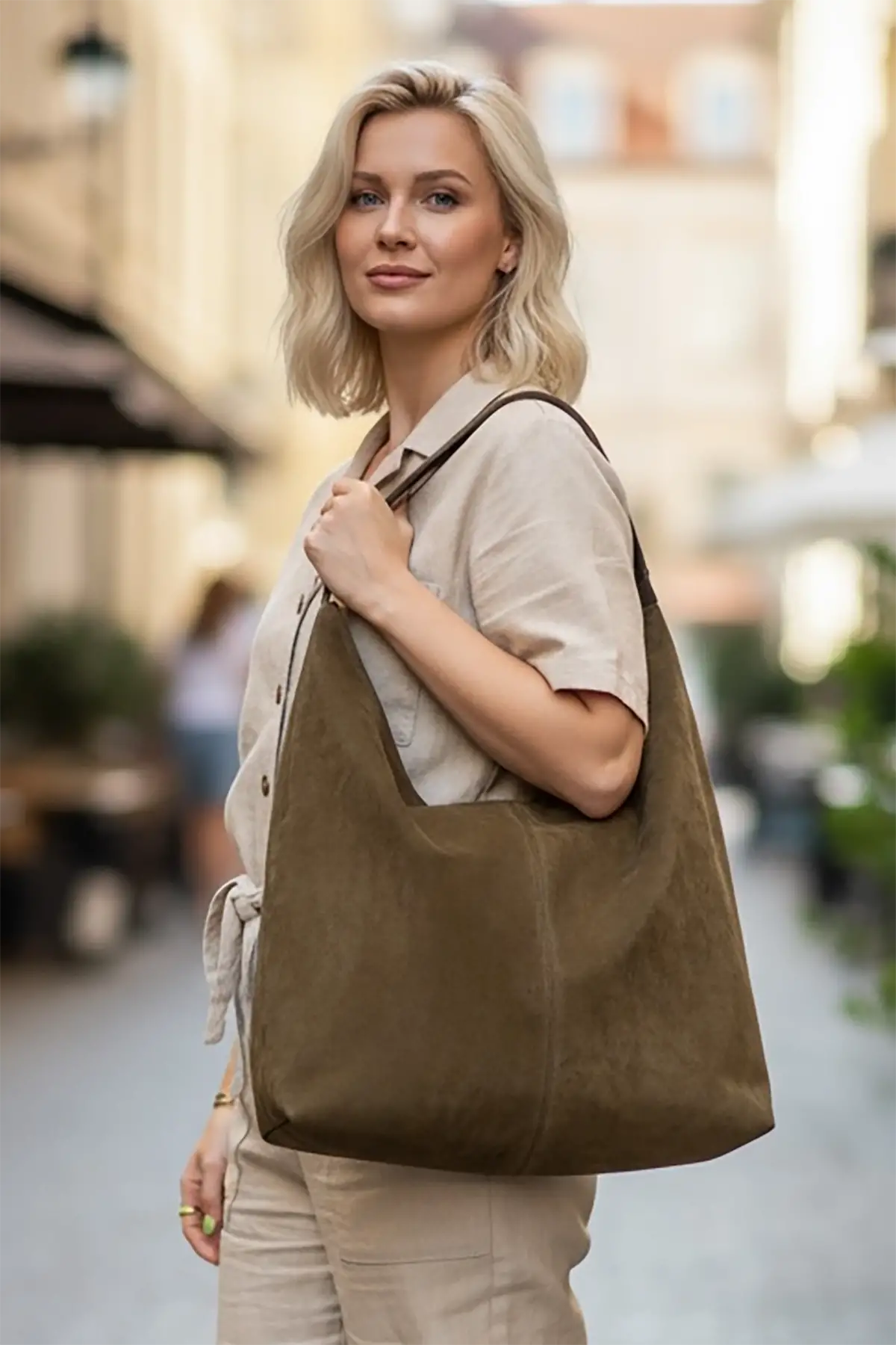 Açık Kahve Renk Büyük Boy Süet Kadın Çanta
