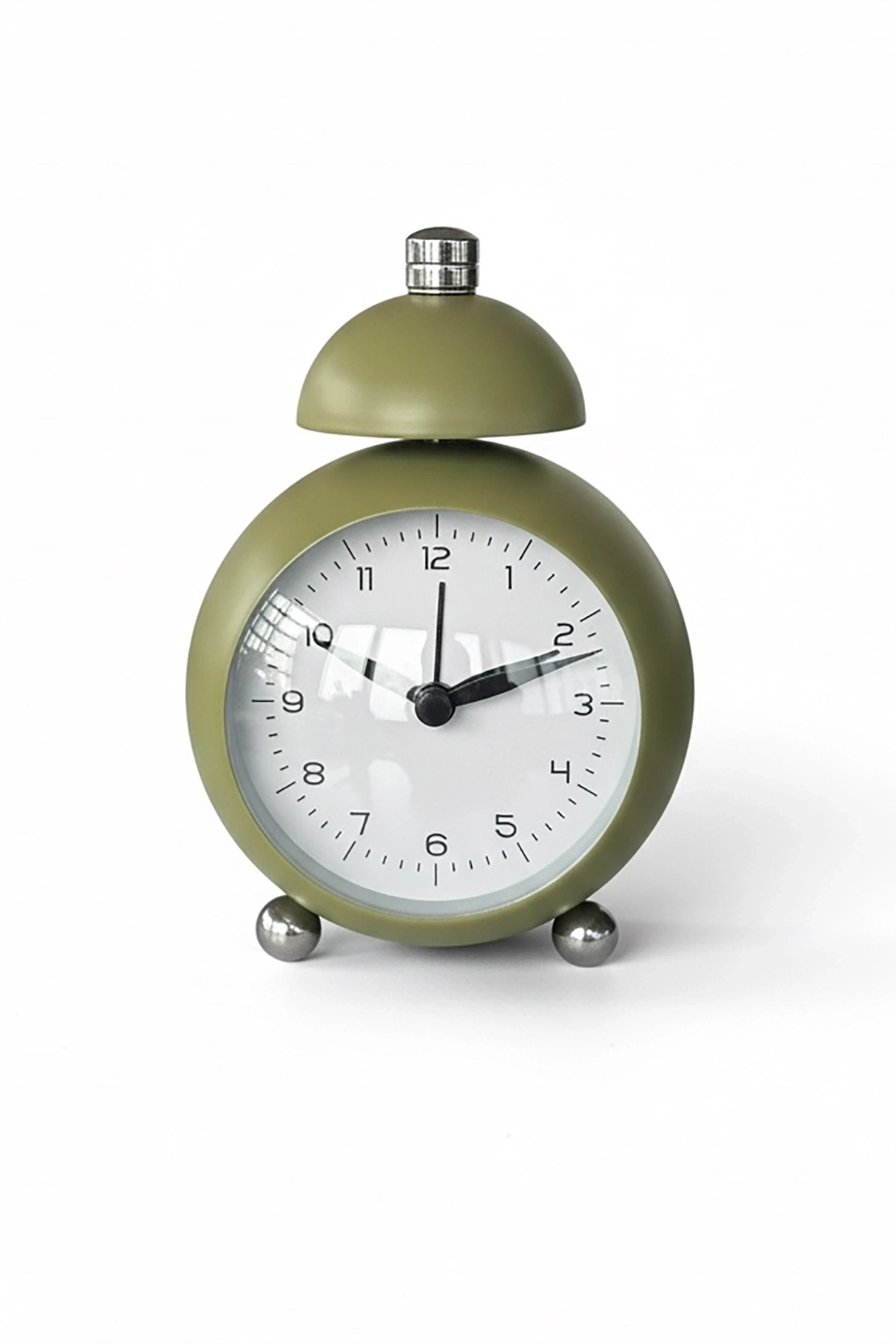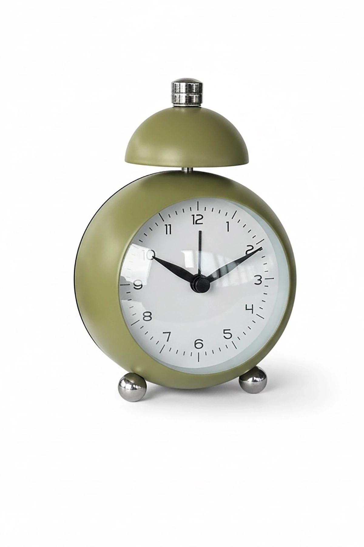 Haki Renk Mini Dekoratif Alarmlı Yuvarlak Masa Saati