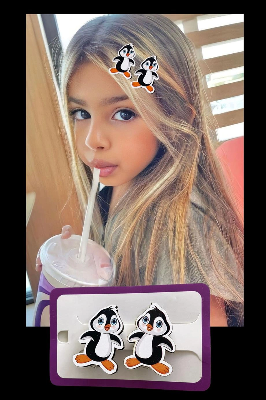 İkili Penguen Figürlü Çocuk Pens Toka Set