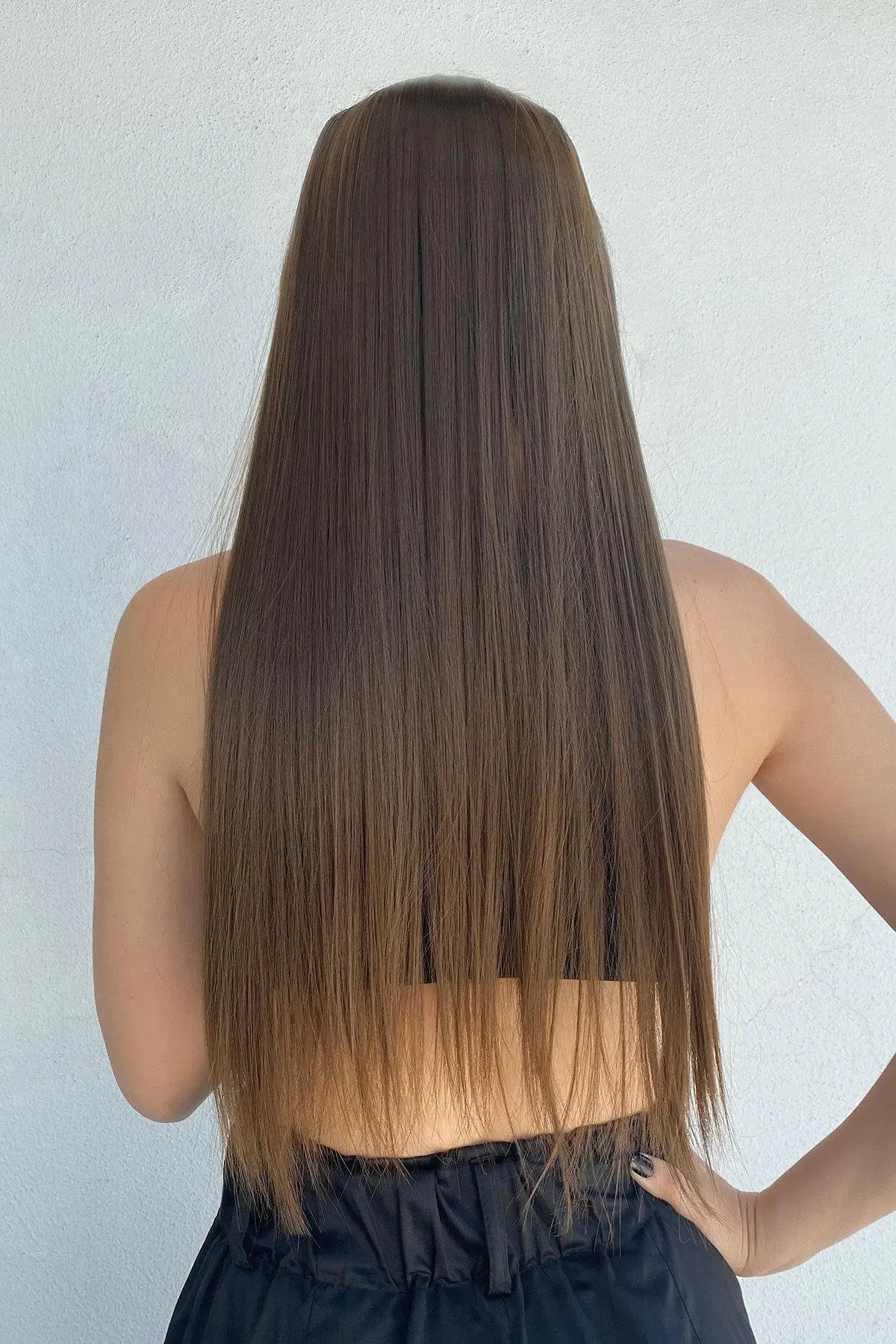 Isıya Dayanıklı Yarımay Çıt Çıt Saç - SH6D- Fındık Kahve - Düz - 60 Cm - 110 Gr (Pınar)