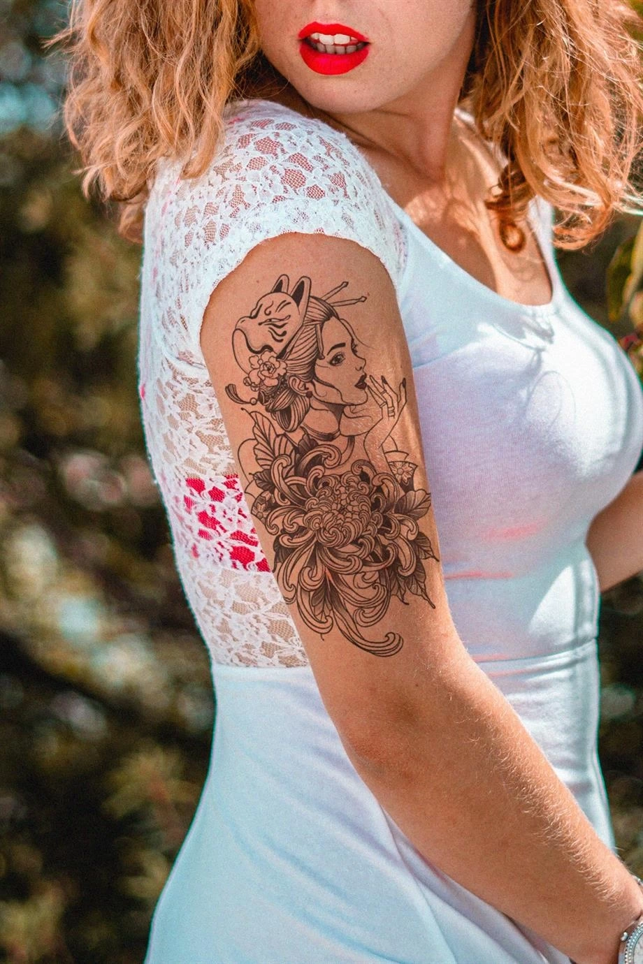 Kadın ve Çiçek Geçici Dövme Tattoo