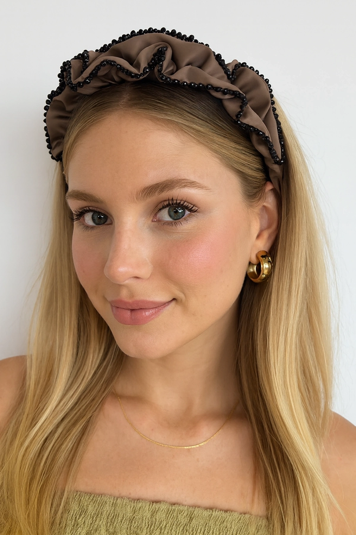 Kahve Renk Boncuk Detaylı Taç