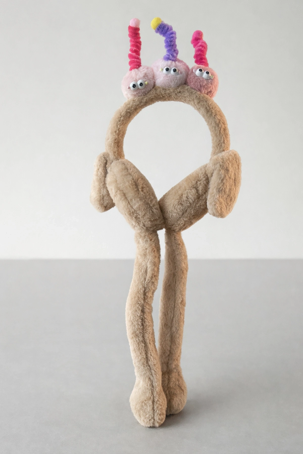 Kahve Renk Canavar Figürlü Kulakları Oynayan Peluş Kulaklık