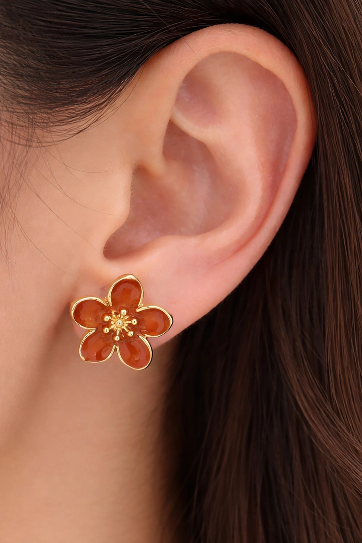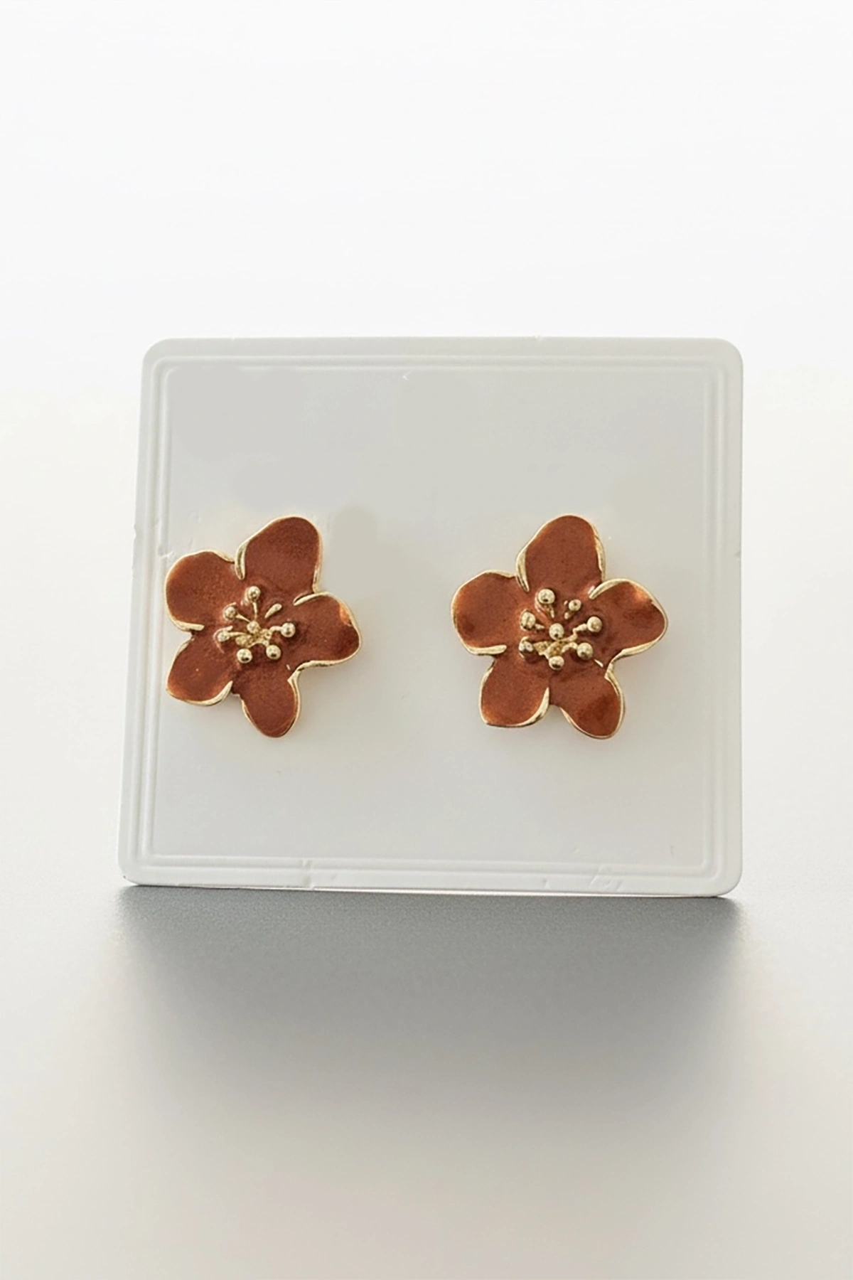 Kahve Renk Çiçek Figürlü Küpe (Çift)
