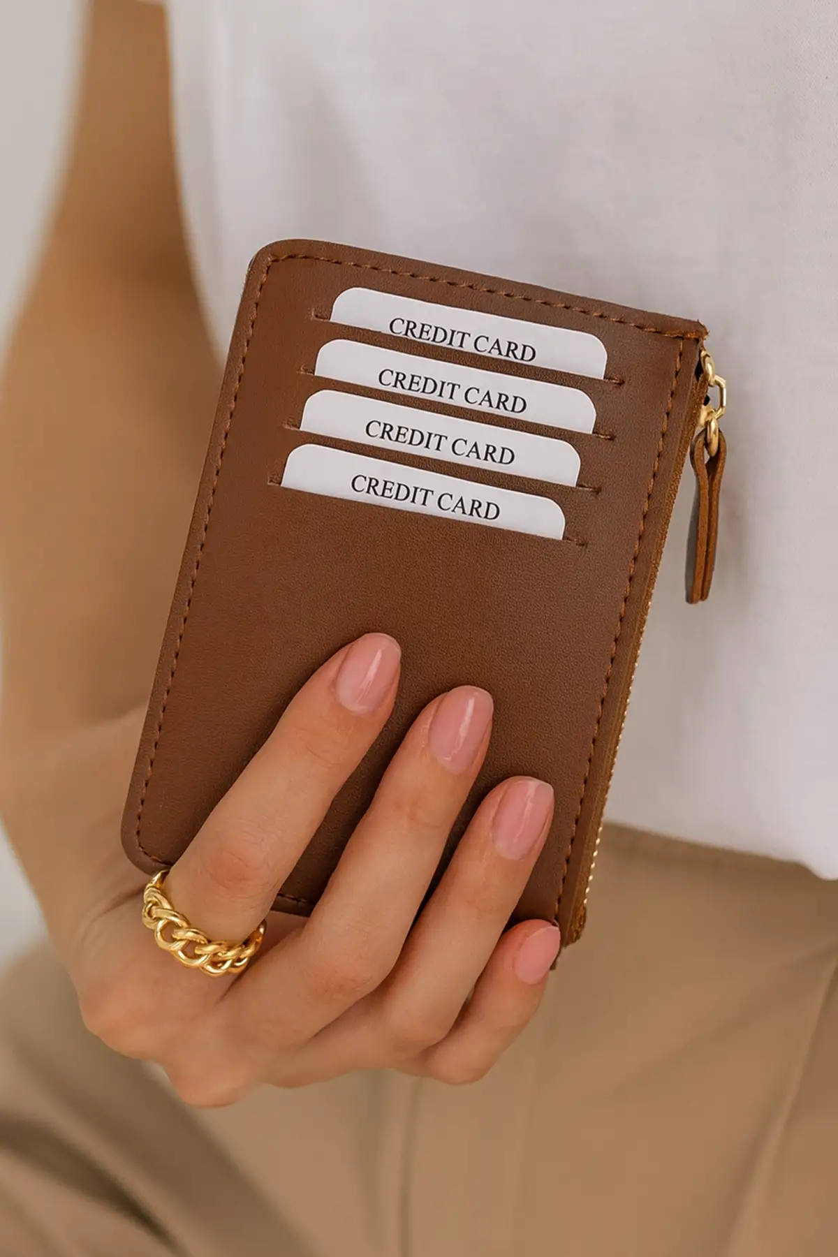 Bej Renk Deri Kadın Cüzdan/ Kartlık