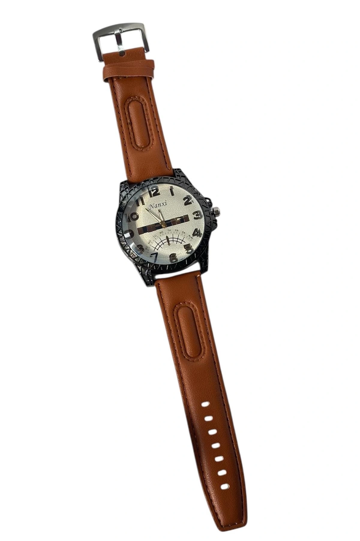 Kahve Renk Deri Kordonlu Çelik Erkek Saat