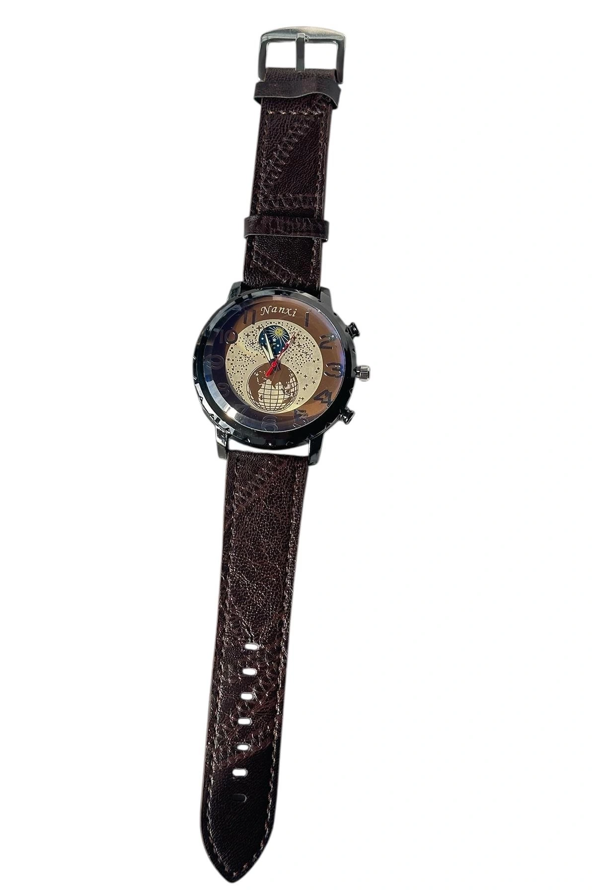Kahve Renk Deri Kordonlu Çelik Erkek Saat