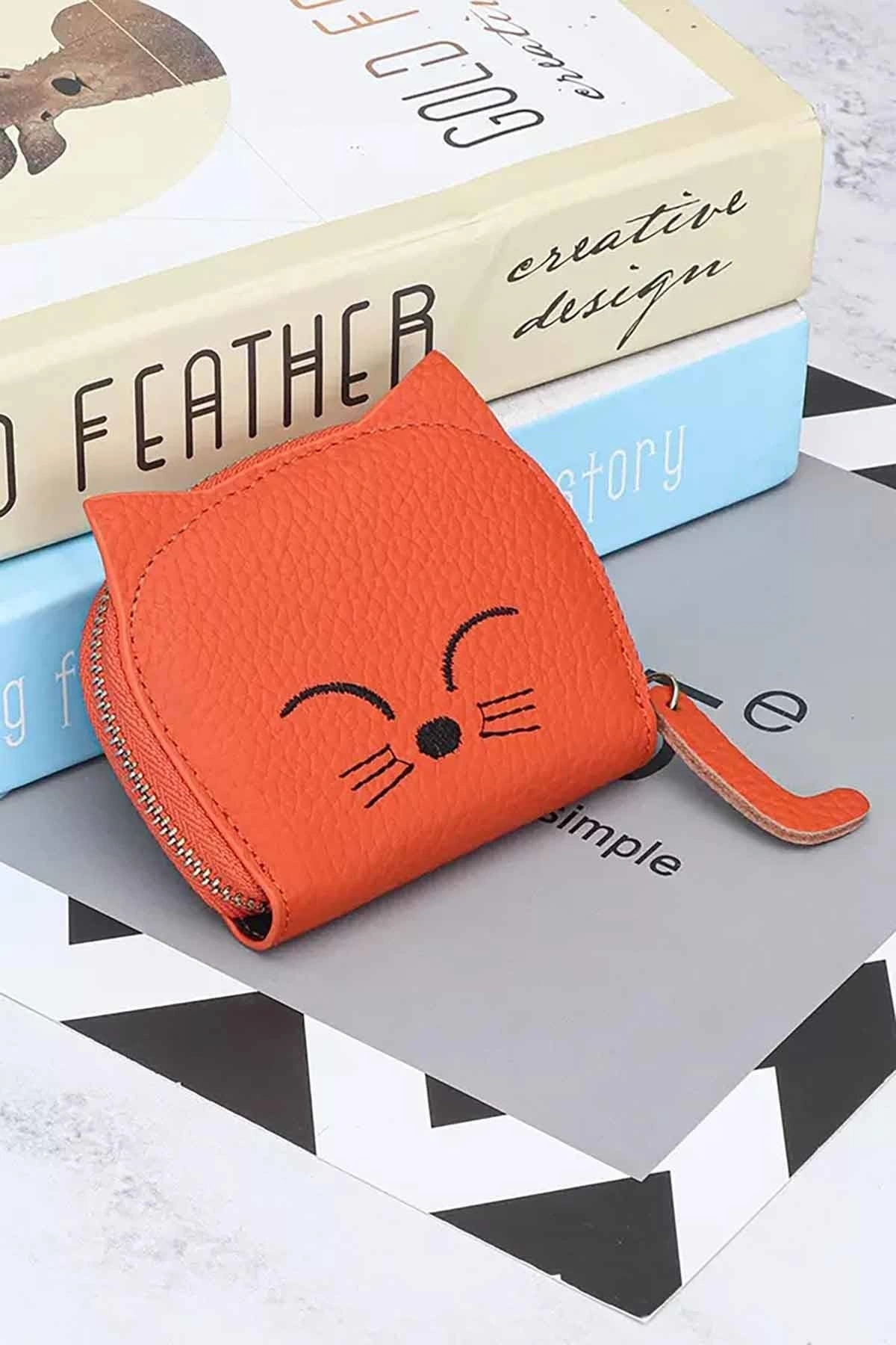 Kahve Renk Kedi Figürlü Cüzdan/Kartlık