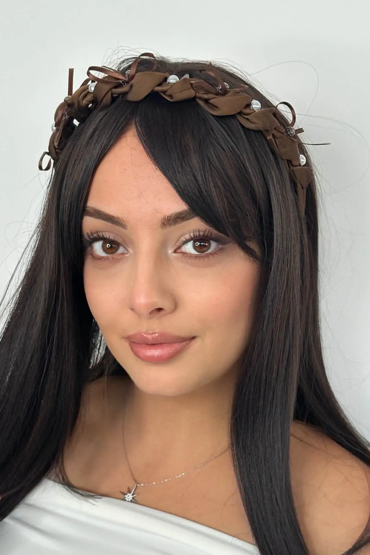 Kahve Renk Taş Ve İnci Detaylı Taraklı Taç