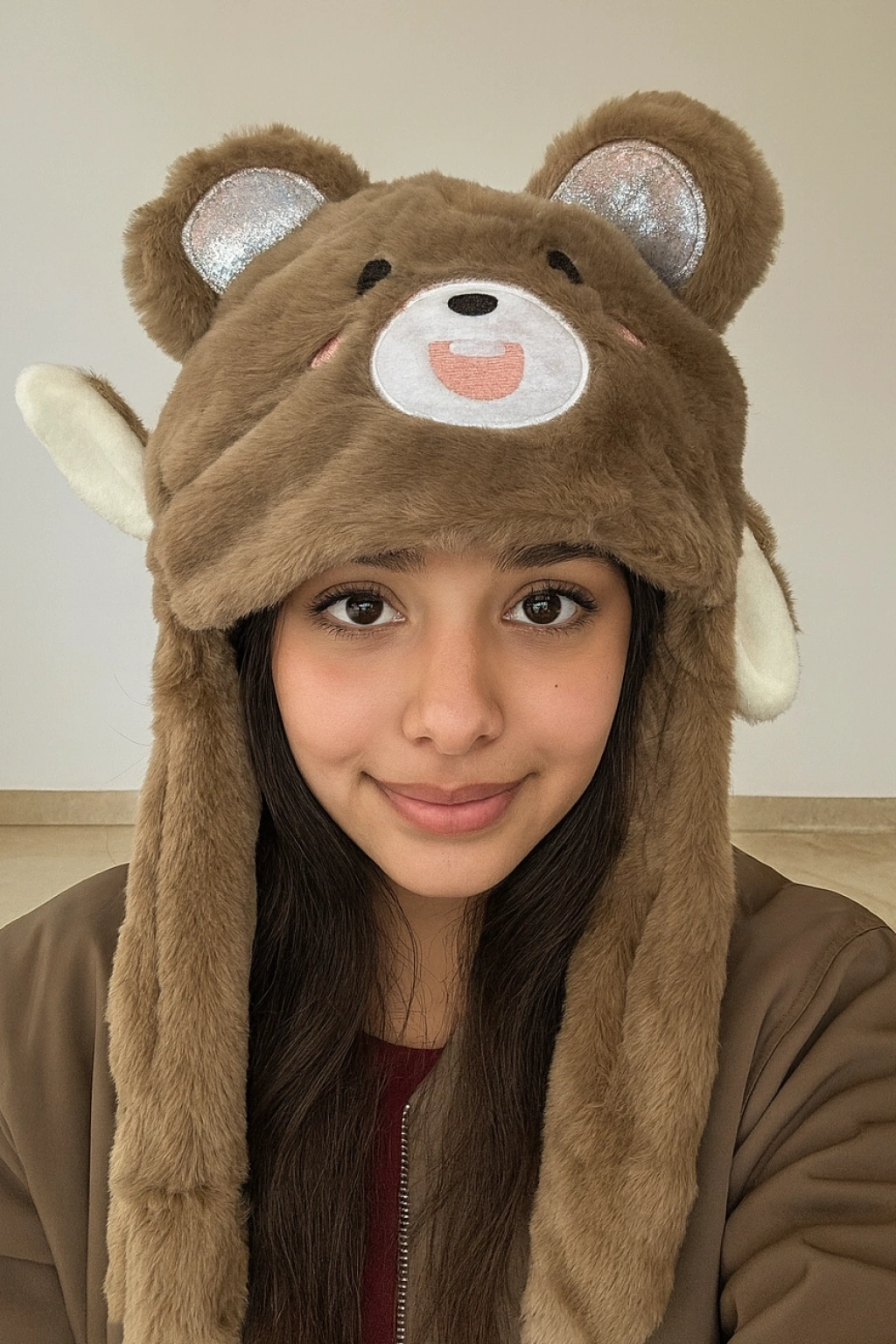 Kahverengi Ayıcık Figürlü Kulakları Oynayan Peluş Şapka